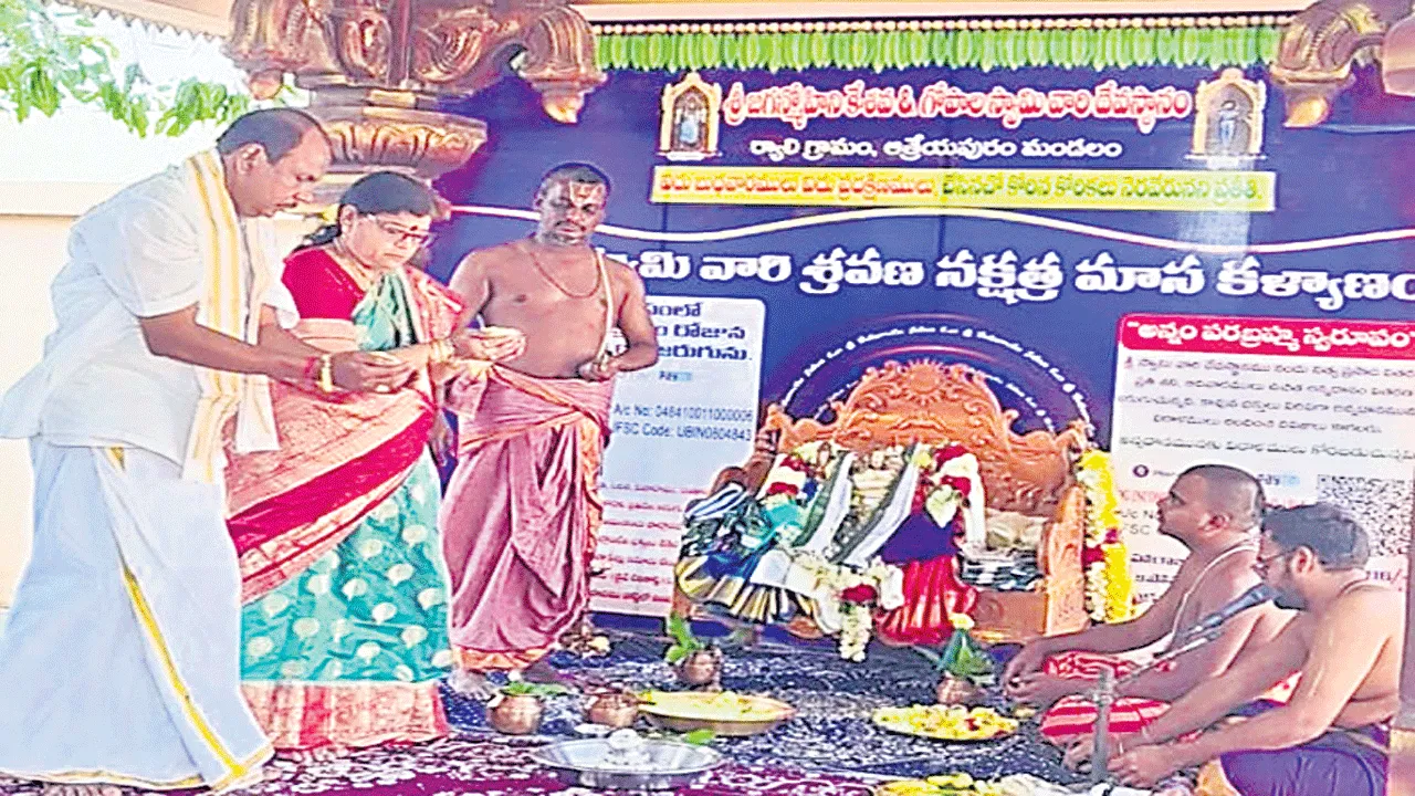 ర్యాలీ జగన్మోహిని కేశవస్వామి ఆలయంలో శ్రవణా నక్షత్ర మాస కల్యాణాన్ని బుధవారం ఘనంగా జరిపారు.
