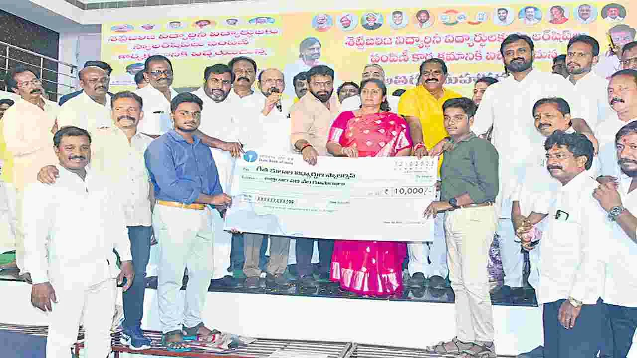రాజమహేంద్రవరం సిటీ, అక్టోబరు 12 (ఆంధ్రజ్యోతి): భవిష్యత్తులో పావలా వడ్డీకే విద్యారుణాలు ఇచ్చే యోచన కూట మి ప్రభుత్వం చేస్తోందని రాష్ట్ర బీసీ సంక్షేమ శాఖ మంత్రి ఎస్.సవిత అన్నారు. రాజమహేంద్రవరం త్యాగరాజ భవన్లో ఆదివారం రాత్రి 226 మంది శెట్టిబలిజ పదో తరగతి మెరిట్ విద్యార్థులకు గోద్రేజ్ సంస్థ ఎస్ఆర్ ఫండ్స్ నుంచి స్కాలర్షిప్స్ పంపిణీ చేసి మాట్లాడారు. బీసీ రిజర్వేషన్లు 34 శాతానికి పెంచబోతున్నారని, బీసీ రక్షణ చట్టం తీసుకొస్తున్నారని చెప్పా రు. జిల్లా ఇన్చార్జి మంత్రి నిమ్మల రామానాయుడు మాట్లాడుతూ అన్న ఎన్టీఆర్ బీసీలకు 34 శాతం రిజర్వేషన్లు కల్పిస్తే అటుపై ఏ ముఖ్యమంత్రి దానిని మార్చలేదన్నారు. కానీ జగన్ వచ్చి 24 శాతానికి తగ్గించడం వల్ల ఆ ఐదేళ్లు 16 వేల మంది బీసీలు అవకాశాలు కోల్పోయారన్నారు. కొంతమంది కండువాలు మార్చిన వారు మా పార్టీలోకి వచ్చారని తులసివనంలో గంజాయి మొక్కలైన వారిని ఎట్టిపరిస్థితుల్లో సీఎం చంద్రబాబు ఉపేక్షించరని చెప్పారు.కార్మిక శాఖ మంత్రి వాసంశెట్టి సుభాష్ మాట్లాడుతూ గతంలో జగన్ కార్పొరేషన్లు పెట్టి వారి నాయకులకు జీతాలు ఇచ్చుకున్నారు తప్పితే వాటికి నిఽధులు కేటాయించడం గీత కులాలకు న్యాయం చేయడం వంటివి చేయలేదన్నారు. మండలి మాజీ డిప్యూటీ చైర్మన్ రెడ్డి సుబ్రహ్మణ్యం మాట్లాడుతూ కూటమి ప్రభుత్వం బీసీలకు న్యాయం చేస్తుందన్నారు. శెట్టిబలిజ కార్పొరేషన్ చైర్మన్ కుడు పూడి సత్తిబాబు మాట్లాడుతూ శెట్టిబలిజ విద్యార్థుల మెరిట్ స్కాలర్షిప్స్ గోద్రేజ్ సీఎస్ఆర్ ఫండ్స్ను ఇప్పించిన మంత్రి వాసంశెట్టి సుభాష్కు ధన్యవాదాలు తెలిపారు. అనంతరం మంత్రులు,వివిధ కమిటీల చైర్మన్లను శెట్టిబలిజ కార్పొరేషన్ ఆధ్వర్యంలో గజమాలతో సత్కరించారు. తొలుత వేదికపై జ్యోతిరావు పూలే, దొమ్మేటి వెంకట రెడ్డి తదితర మహనీయులు చిత్రపటాలకు పూలమాలతో నివాళులర్పించారు.ఈ కార్యక్రమం లో ఎమ్మెల్యే ఆదిరెడ్డి వాసు, బీసీ ఫైనాన్స్ కార్పొరేషన్ చైర్మన్ రెడ్డి అనంతలక్ష్మి, వడ్డె కార్పొరేషన్ చైర్మన్ వెంకటలక్ష్మి, గౌడ కార్పొరేషన్ చైర్మన్ గురుమూర్తి, టీడీపీ రాష్ట్ర కార్యదర్శి కాశి నవీన్ కుమార్, నగర అధ్యక్షుడు మజ్జి రాంబాబు, జనసేన నగర అధ్యక్షుడు వై.శ్రీనివాస్, కడియాల వీరభద్రరావు, బుడ్డిగ రాధా, కడలి రామకృష్ణ పాల్గొన్నారు.