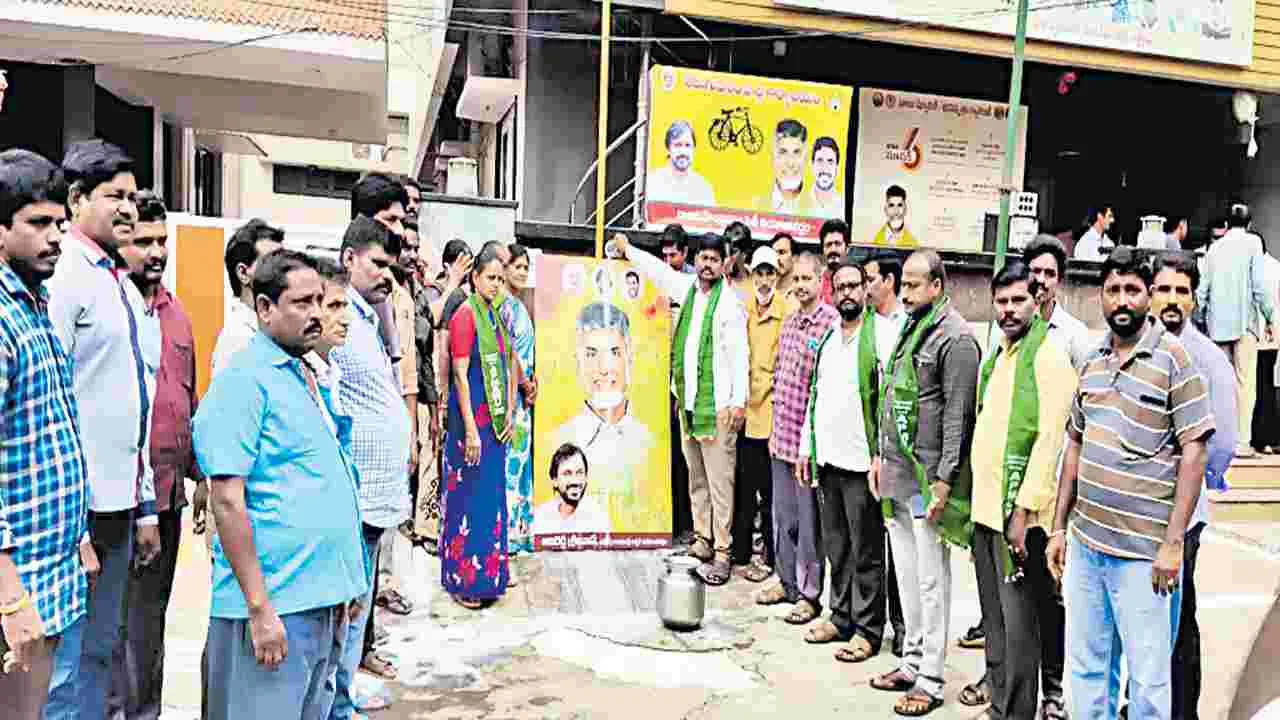 కూటమి ప్రభుత్వం తమపై ఉంచిన నమ్మకాన్ని నిలబెడతామని మునిసిపల్ ఇంజనీరింగ్ వర్కర్స్ యూనియన్ పిఠాపురంలోని జిల్లా ప్రతినిధులు సీహెచ్ సురేష్కుమార్, చిన్నారి సురేష్ తదితరులు తెలిపారు. సుదీర్ఘకాలంగా పనిచేస్తున్న తమ కష్టాన్ని కూటమి ప్రభుత్వం గుర్తించిందని చెప్పారు. ఇక రాజమహేంద్రవరం కార్పొరేషన్ ఇంజనీరింగ్ వర్కర్లు సిటీ ఎమ్మెల్యే ఆదిరెడ్డి వాసును కలిసి ధన్యవాదాలు తెలిపా రు. రాష్ట్ర అవుట్ సోర్సింగ్ మునిసిపల్ ఇంజనీరింగ్ వర్కర్లు యూనియన్ రాష్ట్ర ఉపాధ్యక్షుడు సోమాదుల ఏసుబాబు, సహాయ కార్యదర్శి బుంగ యేసురాజు, జిల్లా అధ్యక్షుడు కొటాని ముకుందరాం, నగర అధ్యక్షుడు సిరిక ప్రసాద్, కార్యదర్శి బాలభవాని కుమార్, ఉపాధ్యక్షుడు బి సాయి.. సీఎం ఫ్లెక్సీకి పాలాభిషేకం చేశారు. గత వైసీపీలో ఎన్ని ఆందోళనలు చేసినా ఎవరు పట్టించుకోలేదని, కూటమి ప్రభుత్వం తమ డి మాండ్లను గౌరవించి వేతనాలు పెంచడం ఆనం దంగా ఉందని చెప్పారు. రాష్ట్రంలో 13వేల మం ది కార్మికులు ప్రయోజనం పొందారని సిటీ ఎమ్మెల్యే ఆదిరెడ్డి వాసు చెప్పారు. కాగా మండపేటలోనూ సీఎంకు పాలాభిషేకం చేశారు.