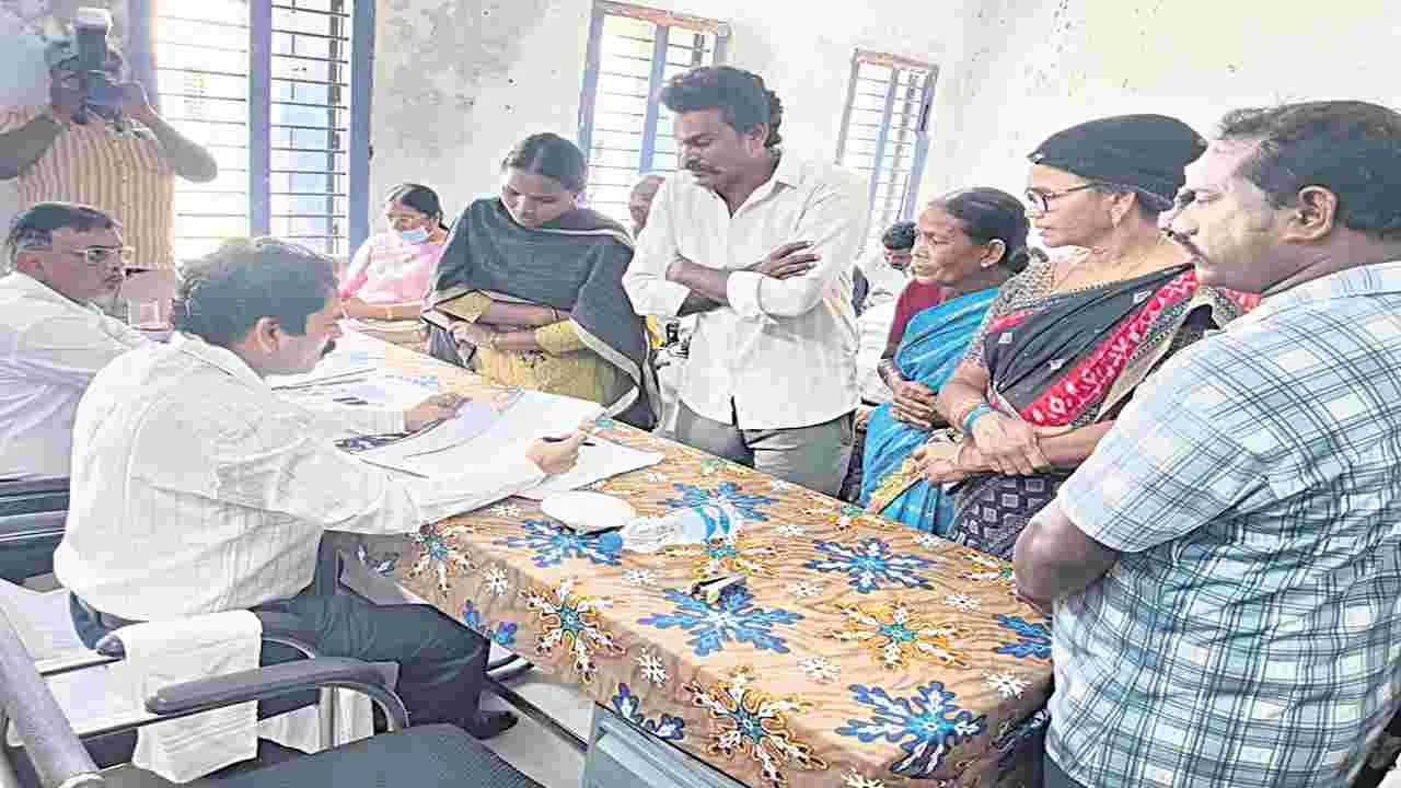 గోకవరం, జూలై 28 (ఆంధ్రజ్యోతి) : ప్రజా సమస్యల సత్వర పరిష్కారానికే పీజీఆర్ఎస్ కార్యక్రమాన్ని నిర్వహిస్తున్నామని జేసీ చిన్న రాముడు అన్నారు.గోకవరం తహశీల్దార్ కార్యా లయంలో సోమవారం జరిగిన ప్రజా సమ స్యల పరిష్కార వేదిక (పీజీఆర్ఎస్) కార్యక్ర మానికి హాజరై అర్జీలు స్వీకరించారు. 69 అర్జీ లను త్వరితగతిన పరిష్కరించేందుకు కృషి చేస్తానన్నారు. వీటిలో 35 అర్జీలు సత్యసాయి తాగునీటి సరఫరా పథకం కార్మికులు నుంచి అందాయని తెలిపారు. కంటి చూపు పూర్తిగా లేదు. మరొక మనిషి సహాయం చేస్తేనే ముం దుకు అడుగు పడేది. ఆలనా పాలనా చూసే వాళ్లు కరువయ్యారు. ప్రభుత్వ పింఛనుకు అన్ని అర్హతలున్నా ఆ భాగ్యం కలగడంలేదని గుమ్మళ్ల దొడ్డి గ్రామానికి చెందిన ఇంజరపు రాంబాబు వాపోయాడు. సుమారు 60 ఏళ్ల పైనుంచి ఎకరం 40 సెంట్లు బండి దారిని సాగు చేసుకుంటున్నా. ఇపుడు ఆ భూమిని వేరేవారికి అప్పగించేందుకు ప్రయత్నాలు జరు గుతున్నాయి సార్ నాకు కాళ్లు అసలు పని చేయవు. ఎవరైనా ఎత్తుకొని తీసికెళ్తేనే నా వ్యవహరాలు చక్కబెట్టుకోగలను అని తంటి కొండ గ్రామానికి చెందిన ముమ్మిడిశెట్టి రమేష్ అనే దివ్యాంగుడు జేసీ వద్ద తమ గోడు విలపించుకున్నాడు. కాళ్ళు చేతులు చచ్చుబడి పూర్తి దివ్యాంగుడైన తనకు ప్రభుత్వం నుంచి రూ.6 వేలు మాత్రమే అందుతున్నాయి.. దయచేసి రూ.15 వేల పింఛను అందేలా చర్యలు తీసుకోవాలని అచ్చుతాపురం గ్రామా నికి చెందిన కోలా శివాజీ వేడుకున్నాడు. తన భార్యను ప్రసవం నిమిత్తం గోకవరం ప్రభు త్వాసుపత్రికి తీసుకెళ్తే అక్కడి వైద్యులు చేసిన ఆపరేషన్ వికటించి సుమారు ఏడాదిగా తన భార్య అనారోగ్యంతో బాధపడుతుందని ఏజెన్సీ ప్రాంతానికి చెందిన ఓ బాధితుడు జేసీ వద్ద లబోదిబోమన్నాడు. సుమారు 19 నెలలు నుం చి జీతాలందక కుటుంబ పోషణ కష్టతరంగా మారిందని సత్యసాయి తాగునీటి సరఫరా కార్మికులు తమ ఆవేదనను వెలిబుచ్చారు. గోకవరంలో ప్రజలను భయబ్రాంతలకు గురి చేస్తున్న కోతులు, కుక్కల నివారణకు చర్యలు చేపట్టాలని జడ్పీటీసీ మాజీ సభ్యుడు పాలూరి బోస్ వినతిపత్రం అందజేశారు. ఈ కార్య క్రమంలో జిల్లా సర్వే అధికారి బి.లక్ష్మీనారా యణ, డీఎంహెచ్వో కె.వెంకటేశ్వరరావు, డీసీ హెచ్ఎస్ పద్మ, ఎంపీడీవో గోవింద్, ఇన్చార్జ్ తహశీల్దార్ పి.సాగర్ పాల్గొన్నారు.
