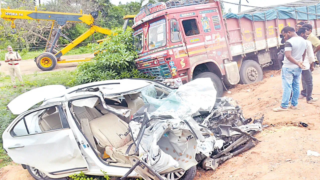 రాజమహేంద్రవరం/అర్బన్/చాగల్లు/కొవ్వూరు/రాజానగరం, మే 26 (ఆంధ్రజ్యోతి): చనిపో యిన తమ కుమార్తెను మనవడు..మనవ రాలిలో చూసుకుంటూ జీవిస్తున్నారు.. తల్లిదం డ్రులు లేని లోటు లేకుండా చూసుకుం టు న్నారు. జీవితం సాఫీగా సాగిపోతోంది.. విధి కన్నుకుట్టిందో ఏమో ఆ ఇద్దరినీ అనాథలను చేసింది..క్షణకాలంలో ముంచుకొచ్చిన మృత్యువు నలుగురు ప్రాణాలను బలితీసుకుంది. మరొక రు ఆస్పత్రిలో ప్రాణాలతో పోరాడుతున్నారు. మనవరాలి పుట్టినరోజుకని కారులో ఆనందం బయలు దేరిన ఆ కుటుంబం అంతలోనే తీవ్ర విషాదంలో మునిగిపోయింది. చాగల్లు మండ లం మార్కొండపాడుకు చెందిన ఉప్పులూరి వరప్రసాద్ గేదేలను పెంచుతూ,హైచర్ వ్యాన్ నడుపుకుంటూ జీవిస్తున్నాడు. వరప్రసాద్ కు మార్తె గత రెండేళ్ల కిందట విద్యుదాఘాతంతో మృతిచెందింది. దీంతో మనవరాలు పూజా భువనేశ్వరి, మనవడు శంకర్ని తమ వద్ద ఉంచుకుని చదివిస్తున్నారు. ఇదిలా ఉండగా నెలన్నర కిందట ఉప్పులూరి వరప్రసాద్ (60), భార్య శివ లీలావతి(56), లీలావతి తల్లి ఇమ్మాని వీరవెంకట సత్యవతి (75) కొవ్వూరు జూనియర్ కళాశాల సమీపంలోని సిటీ కేబుల్ పక్కన ఓ ఇంటిని అద్దెకు తీసుకుని ఉంటున్నా రు. చాగల్లు మండలం దారవరం గ్రామానికి చెందిన లక్కంసాని సురేశ్ అవంతి ఫీడ్స్ కంపెనీలో సూపర్వైజర్గా పనిచేస్తూ భార్య బిందు(34)తో అదే ఇంట్లో ఒక వాటాలో ఉం టున్నారు. సురేశ్, బిందు దంపతులకు పెళ్లై ఏడేళ్లయినా పిల్లలు లేరు. దీంతో ఇరు కుటుం బాలు దగ్గరయ్యాయి.కాకినాడలో ఇంజ నీరింగ్ చదువుతున్న ప్రసాద్ మనవరాలు భువనేశ్వరి పుట్టిన రోజు సోమవారం కావడంతో వెళదా మని అనుకున్నారు. ఈ మేరకు పక్క వాటాలో ఉం టున్న సురేష్ తన స్నేహితుడు సత్యనారా యణ వద్ద నుంచి డిజైర్ షిఫ్ట్ కారు తీసుకు రాగా ఉదయం 9 గంటలకు ఇంటి నుంచి ఐదుగురూ బయలుదేరారు. గామన్ బ్రిడ్జి రోడ్డుపై 9.30 గంటల సమయంలో రవాణా శాఖాధికారులు సోమవారం వాహనాలు తనిఖీ చేస్తుండడం గమనించిన డ్రైవర్ రికార్డులు సక్రమంగా లేకపోవడంతో అవతల లేన్లో వస్తున్న బొగ్గులోడు లారీ డివైడర్ మార్గం నుంచి దారి మళ్లించినట్టుగా సమాచారం.అదే సమయంలో ఇవతల వైపు లేనులో వెళుతున్న కారును మధ్యలో ఢీకొట్టి రోడ్డు కిందకు నెట్టుకు పోయింది. వెనుక ఉన్న చెట్టుకు లారీకి మధ్య కారు ఉండిపోయి ఇంజన్ భాగం నుజ్జునుజ్జ యింది. వరప్రసాద్ గుండెలకు స్టీరింగ్ బల ంగా నొక్కుకుపోయినట్లు తెలుస్తోంది. వెనుక సీట్లో కూర్చున ముగ్గురూ మహిళలు నలిగి పోయారు. డోర్లను బలవంతంగా లాగి వాళ్లను బయటకు తీశారు. కారు లోపల అంతా రక్తమ డుగులా మారిపోయింది. బ్యాగ్ లోని భోజ నం, డిక్కీలోని పిండి వంటలు ఉన్నాయి.