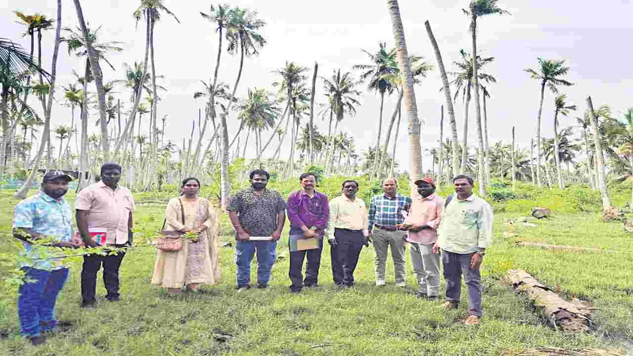 శంకరగుప్తం కొబ్బరితోటల్లో అంబాజీపేట శాస్త్రవేత్తల బృందం పర్యటన
