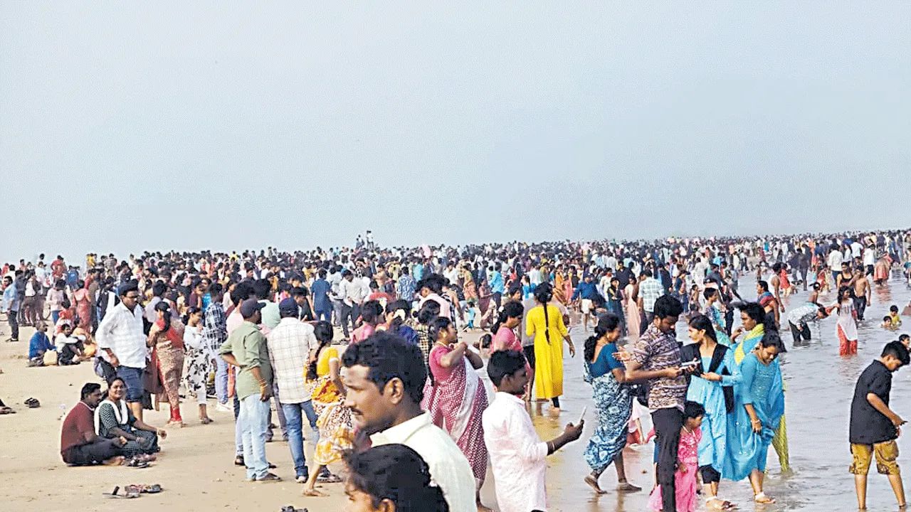 సెలవు రోజుల్లో కాకినాడ ఎన్టీఆర్ బీచ్కు తరలివస్తున్న సందర్శకులు
