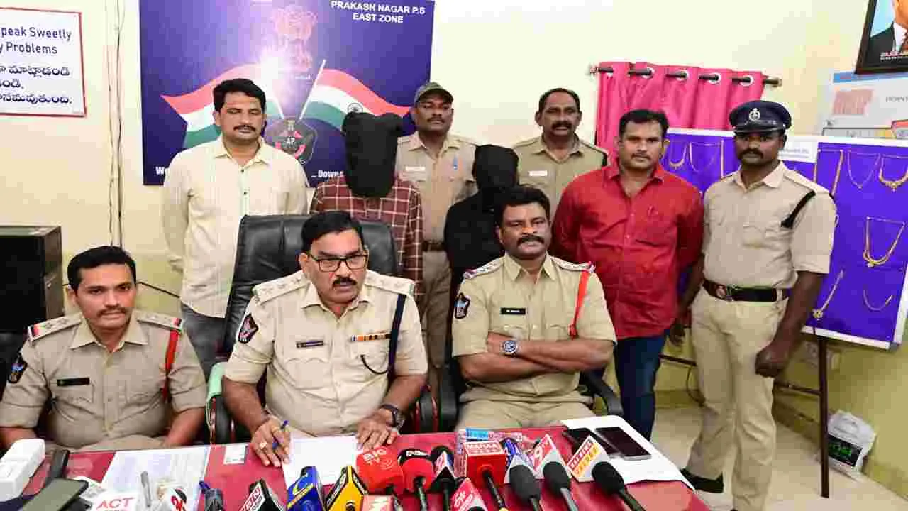 రాజమహేంద్రవరం, జూన్ 16 (ఆంధ్రజ్యోతి) : చోరీలు చేయడంలో అతను సిద్ధహస్తుడు.. ఎందుకంటే..అతని వయసు 33.. చోరీలు 80... అంతర్రాష్ట్ర దొంగగా ముద్ర.. ఇదీ విశాఖ పట్నం జిల్లా గాజువాక మండలం సింహగిరి కాలనీకి చెందిన బులా నాగసాయి నేరచరిత్ర..17 ఏళ్ల వయసులోనే చోరీల బాటపట్టాడు.. చోరీలు చేయడంలో ప్రావీణ్యత సాధించాడు. రాజమ హేంద్రవరం ప్రకాశం నగర్ పోలీసులు అంత ర్రాష్ట్ర దొంగ ఆటకట్టించారు.సెంట్రల్ జోన్ డీఎస్పీ కె.రమేశ్ బాబు సోమవారం వివ రాలు వెల్లడిం చారు. పలు కేసుల దర్యాప్తులో భాగంగా పాత నేరస్తుల చిట్టావిప్పితే అం దులో బులా నాగ సాయిపై అనుమానం వచ్చిందన్నారు.ఈ మేరకు అతని స్నేహితుడు పశ్చిమ గోదావరి జిల్లా భీమ వరానికి చెందిన మహ్మద్ సోనూ ఆలీ అహ్మద్ ఖాన్ను అదుపులోకి తీసుకొని విచారించగా అస లు విషయం బయటపడిందన్నారు. బులా నాగ సాయి 2007 నుంచీ దొంగతనాలు చేస్తున్నాడని తెలిపాడన్నారు. నాగసాయి దొంగిలించిన సొత్తు ను అహ్మద్ఖాన్ కొనుగోలు చేయడం, దొంగత నాల్లో సహకరించడం చేస్తాడన్నారు. నిందితు డిపై గాజువాక, వైజాగ్, రాజమహేంద్రవరం, కడప, నెల్లూరు, ఒంగోలు, అత్తిలి, తణుకు, తాడే పల్లిగూడెం, కావలి, బెంగళూరు ప్రాంతాల్లో 80 దొంగతనం కేసులు ఉన్నాయన్నారు. గాజువాక పీఎస్లో సస్పెక్ట్ షీట్ ఉందన్నారు.ఇటీవల రాజ మహేంద్రవరం ప్రకా శంనగర్ పోలీస్ స్టేషన్లో నమోదైన కేసుల్లో నాగసాయి, అహ్మద్ ఖాన్ని సోమవారం అరెస్టు చేసి సుమారు రూ.43 లక్ష లు విలువైన 465 గ్రాముల బంగారు ఆభర ణాలు స్వాధీనం చేసుకున్నామన్నారు. కేసు ఛేది ంచిన సీఐ ఆర్ఎస్కే బాజీలాల్,ఎస్ఐ జి.సతీష్, హెచ్సీ వి.నాగరాజు, క్రైమ్ పీసీలు కె.ప్రదీప్ కుమార్,ఎస్.వీరబాబు, వి.దుర్గాప్రసాద్, వి.శివ ప్రసాద్లను ఎస్పీ అభినందించారు.