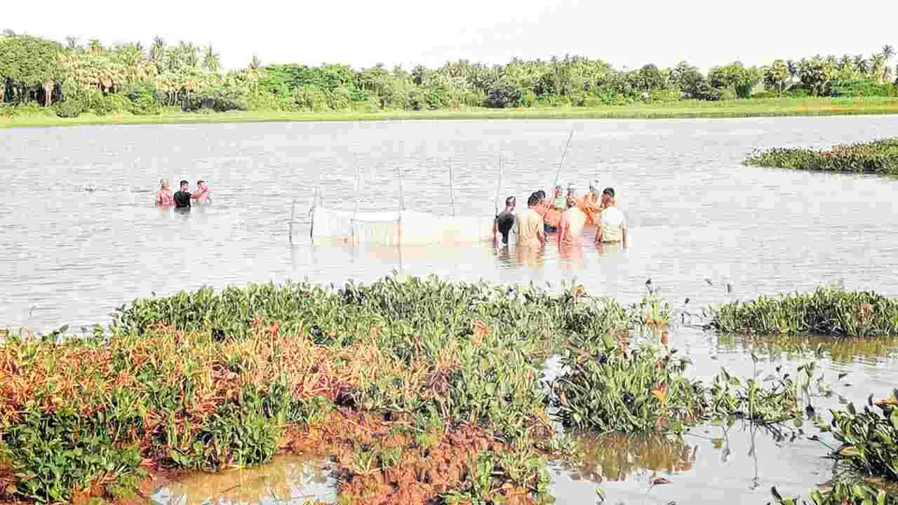 కొత్తపల్లి, మే 29 (ఆంధ్రజ్యోతి): కాకినాడ జిల్లా కొత్తపల్లి మండలంలోని కొమరగిరిలో సుమారు 250 ఎకరాల విస్తీర్ణం కలిగిన పెద్ద చెరువు ఉంది. ఇందులో సంవత్సరానికి ఒకసారే చేపలు పట్టుబడి పడతారు. పంచాయతీకి చెందిన ఈ చెరువును స్థానికంగా మకాం ఉండే పల్లీలు లీజుకు తీసుకుని చేపలు పండిస్తారు. ప్రతి సంవత్సరం జూన నెల దాటాక చెరువు చేపల్లో మంచివైన రాగండి, బొచ్చు, గడ్డి, చెరు వు సంధువాలు, ఎర్రమైల, వాలుగు తదితర రకాలకు చెందిన చేపల పిల్లలను వేస్తారు. మరలా మే నెల వచ్చే వరకు ఆ చెరువు వద్దకు పల్లీలు వెళ్లరు. అంతేగాక చేప పిల్లలకు ఎటువంటి ఆహారం వేయరు. చెరువులో ఉండే గడ్డి, నాచు, తూటికాడ, పొన్నగంటి కూరలను ఆహారంగా తింటాయి. సుమారు సంవత్సరం పాటు పెరిగిన చేపలు ఒక్కొక్కటి ఐదు నుంచి 8 కిలోల బరువు పెరుగుతాయి. వాటిని వారం లో రెండు లేక మూడు రోజులు పట్టుబడి పడతారు. కిలో రూ.130 చొప్పున తొలుత గ్రామ ప్రజలకు టోకెన్ల ద్వారా అమ్ముతారు. వారు వాటిని కొనుగోలు చేసి పొరుగూళ్లలో వున్న బంధువులు, స్నేహితులు, రాజకీయ ప్రముఖు లకు పంపిస్తారు. ఆ తర్వాత వివిధ గ్రామాల నుంచి వచ్చిన ప్రజలకు కిలో రూ.150 చొప్పున విక్రయిస్తారు. ఎటువంటి మేత (ఆహారం) వేయకుండా కేవలం గడ్డి, తూటికాడ, పొన్న గంటి కూరలను మేతగా తిన్న చేపల రుచి అమోఘంగా ఉంటుందని ఇక్కడి ప్రజలు చెప్తు న్నారు. ఈ చేపలను వేపుడు లేదా పులుసు చేసుకుని మాంసాహాప్రియులు లొట్టలేసుకుని తింటారు. ఇతర ప్రాంతాలకు చెందిన వారు కొమరగిరి చెరువులో చేపలు ఎప్పుడు పడతారా అని బంధువులను ఆరా తీయడం గమనార్హం.