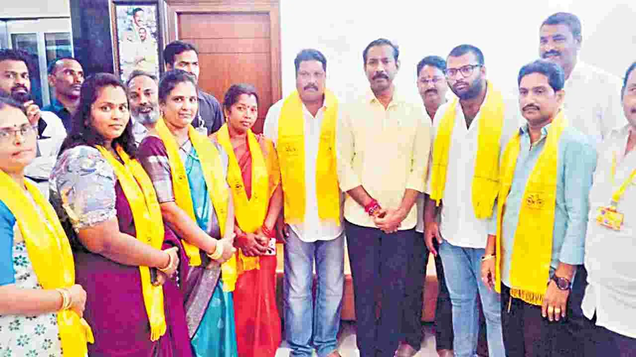 అనపర్తి, జూన్ 27 (ఆంధ్రజ్యోతి) : అనపర్తిలో వైసీపీకి భారీ షాక్ తగిలింది. వైసీపీ ఎంపీపీ, వైస్ ఎంపీపీ, నలుగురు ఎంపీటీసీలు శుక్రవారం విజయవాడలో జరిగిన కార్యక్రమంలో టీడీపీ ఇన్చార్జి నల్లమిల్లి మనోజ్రెడ్డి ఆధ్వర్యంలో టీడీపీలో చేరారు. విజయవాడ కుంచనపల్లిలోని టీడీపీ రాష్ట్ర అధ్యక్షుడు పల్లా శ్రీనివాసరావు క్యాంపు కార్యాలయంలో ఏర్పాటు చేసిన కార్యక్రమంలో అనపర్తి వైసీపీకి చెందిన ఎంపీపీ అనసూరి సూర్యనారాయణ(బుజ్జి), ఎంపీటీసీ పద్మావతి, కుతుకులూరు ఎంపీటీసీ, మండల పరిషత్ ఉపాధ్యక్షుడు పులగం బులిరెడ్డి, రామవరం ఎంపీటీసీలు నల్లమిల్లి భాగ్యలక్ష్మి, గొలుగూరి గౌతమి, పెడపర్తి ఎంపీటీసీ తమలంపూడి మణిలకు రాష్ట్ర అధ్యక్షుడు పల్లా శ్రీనివాసరావు పార్టీ కండువాలు కప్పి ఆహ్వానించారు. కూటమి ప్రభుత్వం సంక్షేమ కార్యక్రమాలకు ఆకర్షితులై టీడీపీలో చేరామన్నారు.వీరి వెంట సత్తి దేవదానరెడ్డి, తేనెల శ్రీనివాస్, కర్రి చిన్నారెడ్డి, నల్లమిల్లి శ్రీనివాసరెడ్డి, వెంకటసుబ్బారెడ్డి ఉన్నారు.