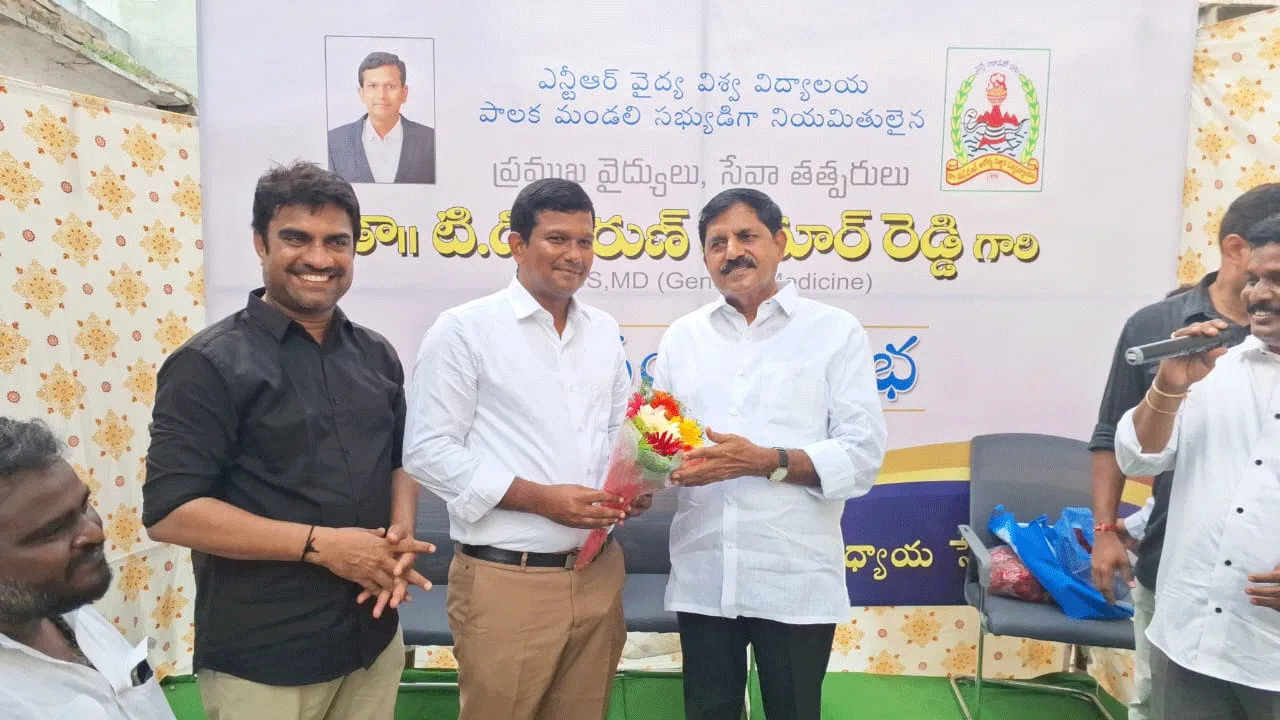 ప్రొద్దుటూరు టౌన్, జూన్ 15 (ఆంధ్రజ్యోతి): రాష్ట్రంలో వైద్యరంగం అభివృద్ధికి డాక్టర్ వరుణ్కుమార్ కృషి చేయాలని జమ్మలమడుగు ఎమ్మెల్యే దేవగుడి ఆదినారాయణరెడ్డి అన్నారు. ఆదివారం ఉపాధ్యాయ సేవా కేంద్రంలో ఎన్టీఆర్ హెల్త్ యూనివర్సిటీ ఎగ్జిక్యూటివ్ కౌన్సిల్ మెంబర్గా నియమితులైన డాక్టర్ వరుణ్కుమార్రెడ్డిని ఉపాధ్యాయ సంఘాల సమన్వయ వేదిక రాష్ట్ర గౌరవాధ్యక్షుడు ఒంటేరు శ్రీనివాసులరెడ్డి ఆధ్వర్యంలో ఘనంగా సత్కరించారు. ఈ సందర్భంగా ముఖ్య అతిఽథిగా పాల్గొన్న ఎమ్మెల్యే ఆదినారాయణరెడ్డి మాట్లాడుతూ వైద్య, ఆరోగ్యశాఖ మంత్రి సత్యకుమార్ రాష్ట్రానికి ఎంత అవసరమో ప్రొద్దుటూరుకు డాక్టర్ వరుణ్కుమార్రెడ్డి అంతే అవసరమన్నారు. వైద్యం తెలిసిన ఆయనను ఎన్టీఆర్ హెల్త్ యూనివర్సిటీ సభ్యునిగా నియమించడం హర్షణీయమన్నారు. ఒంటేరు శ్రీనివాసులరెడ్డి మాట్లాడుతూ జిల్లాలో మొదటిసారిగా ఎన్టీఆర్ హెల్త్ యూనివర్సిటీ సభ్యునిగా వరుణ్కుమార్రెడ్డి నియమితులయ్యారని తెలిపారు. ఆయన కరోనా సమయంలో తక్కువ ఖర్చుతో ఎందరో పేద ప్రజల ప్రాణాలను కాపాడారని పేర్కొన్నారు. డాక్టర్ వరుణ్కుమార్రెడ్డి మాట్లాడుతూ మంత్రి సత్యకుమార్, ఎమ్మెల్యే ఆదినారాయణరెడ్డి, ఒంటేరు శ్రీనివాసులరెడ్డి సహకారంతో ఎన్టీఆర్ హెల్త్ యూనివర్సిటీ సభ్యునిగా నియమితులయ్యానన్నారు. వైద్య విద్యలో నైతిక విలువలు పెంచడానికి కృషి చేస్తానన్నారు.