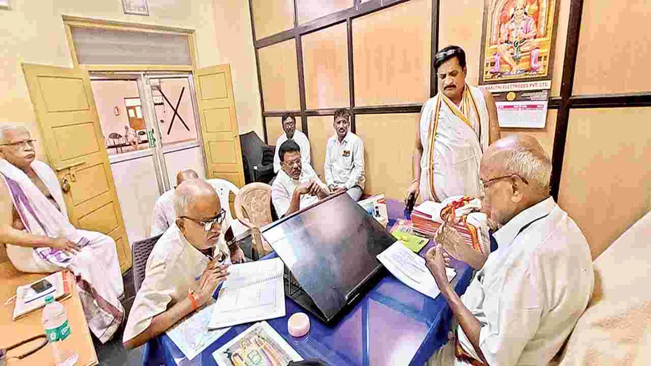 మంత్రాలయం, ఏప్రిల్ 24 (ఆంధ్రజ్యోతి): రాఘవేంద్రస్వామి మఠం భూములను పరిరక్షించేందుకు కృషి చేస్తున్నామని మఠం ఏఏవో మాధవశెట్టి అన్నారు. గురువారం తన కార్యాలయంలో దేవాదాయ శాఖ జిల్లా అసిస్టెంట్ కమిషనర్ సుధాకర్ రెడ్డి, మఠం మేనేజర్ వెంకటేష్ జోషి, శ్రీమఠం ఎస్టేట్ ఆఫీసర్ శ్రీనివాసరావు, సూపరింటెండెంట్ అనంతపురాణిక్, దేవాదాయ శాఖ ఇన్సపెక్టర్ వెంకటేశ్వర్లుతో ప్రత్యేకసమావేశాన్ని ఏర్పాటుచేశారు. ఈ సందర్భంగా ఏఏవో మాట్లాడుతూ రాఘవేంద్రస్వామి మఠం భూములు కొంత మంది ఇనామ్ భూములు విక్రయాలు చేశారని, వాటిపై రికార్డుల ఆధారంగా ముందుకు వెళ్తామని తెలిపారు. మఠానికి చెందిన సర్వే నెంబర్లలో తేడాలు లేకుండా కౌలు తీసుకున్న రైతుల నుంచి అగ్రిమెంటు చేసుకుని కౌలు ద్వారా మఠానికి అదనపు ఆదాయం చేకూరుస్తామన్నారు. అనంతరం భూముల విషయమై దేవాదాయశాఖ అధికారులు, శ్రీమఠం అధికారులతో కలిసి పీఠాధిపతితో చర్చించారు. కార్యక్రమంలో శ్రీమఠం సిబ్బంది నాగరాజు, కృష్ణారావు, దేవాదాయ శాఖ అధికారులు రఘురాం, రాము, సుజ్ఞానేంద్ర పాల్గొన్నారు.