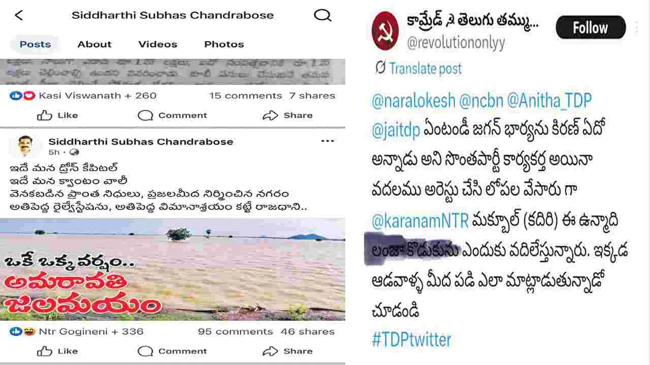 వైసీపీ సోషల్ సైకో బ్యాచ్ మళ్లీ రెచ్చిపోతోంది! ‘కాదేదీ తప్పుడు ప్రచారానికనర్హం’ అంటూ పెట్టుబడులు, వర్షాలు, ఎన్నికలు ఇలా ప్రతి అంశాన్నీ బురదచల్లేందుకు వాడుకుంటోంది. అసత్యాలు, అర్ధసత్యాలు, వక్రీకరణలతో జగన్ రోత మీడియా తప్పుడు కథనాలను ప్రచురించడం... వాటిని అందుకుని సైకో బ్యాచ్ సోషల్ మీడియాలో హోరెత్తించడం! మార్ఫింగ్, ఏఐ ఫొటోలతో కూటమి నేతల కుటుంబ సభ్యుల వ్యక్తిత్వ హననానికి దిగడమూ పెరిగిపోయింది.