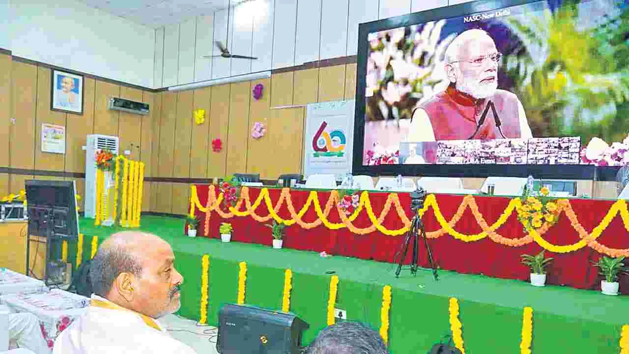 గుంటూరు సిటీ, అక్టోబరు 11(ఆంధ్రజ్యోతి): రైతు సంక్షేమమే దేశ అభివృద్ధికి పునాది అని, కేంద్ర ప్రభుత్వ సహకారంతో రాష్ట్రంలోని డబుల్ ఇంజన్ సర్కార్ రైతులకు మేలు చేసే కార్యక్రమాల అమలుకు చిత్తశుద్ధితో కృషి చేస్తోందని వ్యవసాయ శాఖ మంత్రి కింజరాపు అచ్చెన్నాయుడు అన్నారు. గుంటూరు సమీప లాంలోని ఆచార్య ఎన్జీ రంగా వ్యవసాయ విశ్వ విద్యాలయంలో న్యూఢిల్లీ నుంచి ప్రధాని మోదీ ప్రారంభించిన పీఎం ధన్-ధాన్య కృషి యోజన, పప్పు ధాన్య ఆత్మ నిర్భరత మిషన్ ప్రారంభోత్సవ ప్రత్యక్ష ప్రసార కార్యక్రమంలో మంత్రి అచ్చెన్నాయుడు పాల్గొన్నారు. ఈ సందర్భంగా మంత్రి మాట్లాడుతూ పీఎం ధన్ ధాన్య యోజన రైతుల ఆర్థిక పరిపుష్టికి దారితీస్తుందని అన్నారు. దేశవ్యాప్తంగా రూ.42,000 కోట్ల విలువైన వ్యవసాయ, మత్స్య, పశుసంవర్ధక తదితర అనుబంధ రంగాలకు చెందిన ప్రాజెక్టులను ప్రధాని ప్రారంభిస్తున్నారని తెలిపారు. పీఎం ధన్-ధాన్య కృషి యోజనలో రాష్ట్రంలో ఎంపికైన అల్లూరి, అనంతపురం, శ్రీ సత్యసాయి, అన్నమయ్య జిల్లాల్లో వచ్చే ఆరేళ్లలో.. వ్యవసాయ అనుబంధ రంగాల్లో ఉత్పత్తుల పెంపు, నాణ్యతపై దృష్టి, పంట నష్టాల తగ్గింపు లక్ష్యంగా ప్రోత్సాహం అందిస్తారని తెలిపారు. ప్రజల ఆహార అలవాట్లు మారిన నేపథ్యంలో ప్రోటీన్తో కూడిన పప్పుధాన్యాలను ప్రజలకు అందచేయడానికి.. వాటి సాగును ప్రోత్సహిస్తారని చెప్పారు. రైతులు సాగుచేసిన పప్పు ధాన్యాలను చివరి గింజ వరకు మద్దతు ధరకు ప్రభుత్వం కొనుగోలు చేస్తుందన్నారు. రైతులు ఒకే విధమైన పంటలను సాగు చేయకుండా ప్రకృతి సాగు పద్ధతులను అవలంబించాలని మంత్రి సూచించారు. విదేశీ ఎగుమతులకు వీలుగా పంట ఉత్పత్తుల్లో నాణ్యతను పెంచాలన్నారు. ఈ కార్యక్రమంలో ఎమ్మెల్యే బూర్ల రామాంజనేయులు, వ్యవసాయ శాఖ ఎక్స్అఫిషియో సెక్రటరీ బి.రాజశేఖర్, ఉప కులపతి శారద జయలక్ష్మిదేవి, విశ్వ విద్యాలయ అధికారులు, రైతులు పాల్గొన్నారు.
