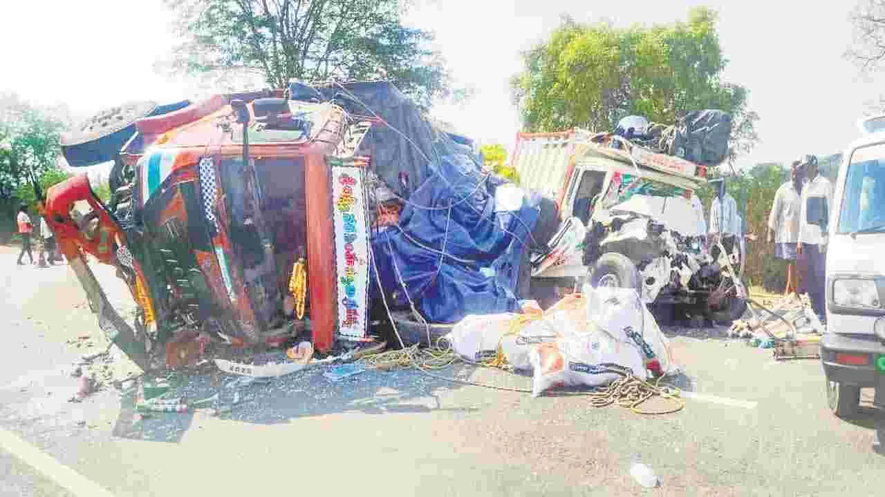 ఎదురెదురుగా వేగంగా ఢీకొన్న ట్రాలీ బొలెరో, లారీ