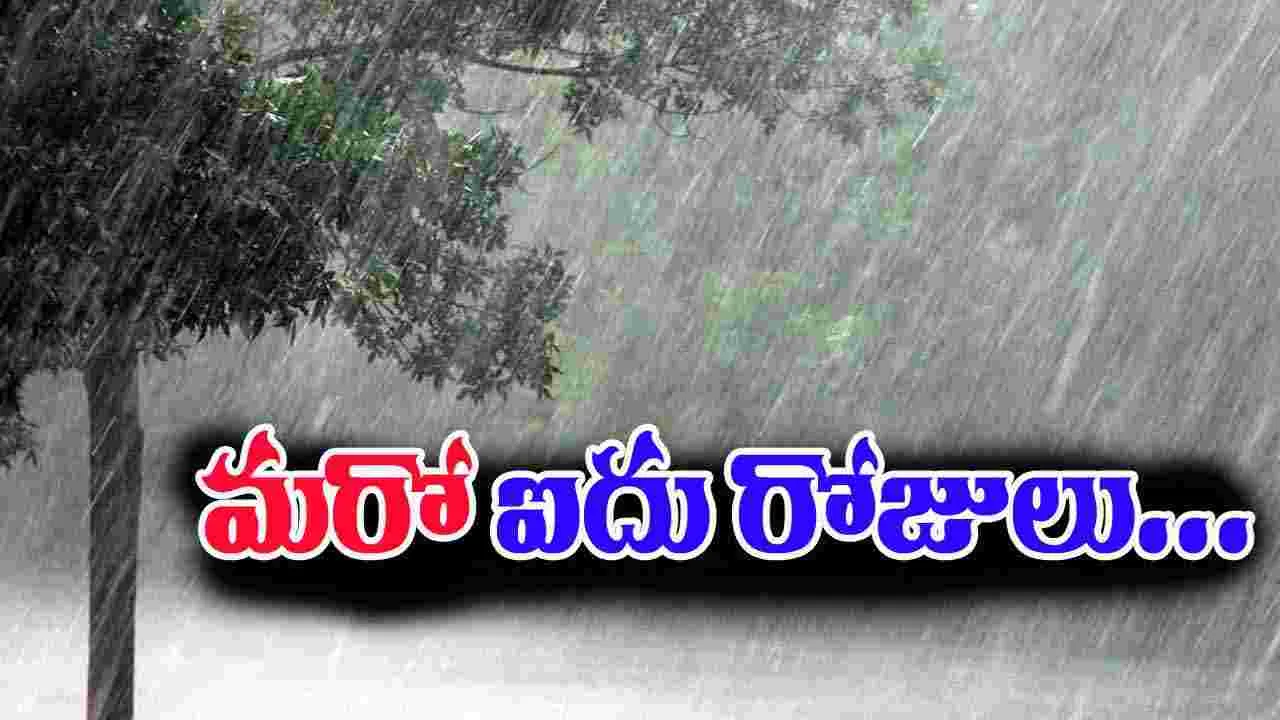 రాష్ట్రంలో మరో ఐదు రోజులపాటు వర్షాలు కురవనున్నాయని వాతావరణ శాఖ తెలిపింది. మరోవైపు, దక్షిణ ఒడిసా పరిసరాల్లో ఉపరితల ఆవర్తనం కొనసాగుతోంది. దీని ప్రభావంతో సోమవారం రాష్ట్రంలోని పలు ప్రాంతాల్లో పిడుగులు, ఈదురుగాలులతో వర్షాలు కురిశాయి. ఉదయం నుంచి సాయంత్రం వరకు నర్సీపట్నంలో 114, మందసలో 88.75, గొలుగొండలో 88.25, ఇనుమెల్ల(పల్నాడు జిల్లా)లో 80, అనకాపల్లి జిల్లా గంధవరంలో 78, పరవాడలో 71, ఏలూరు జిల్లా టి.నరసాపురంలో 67.75 మిల్లీమీటర్ల వర్షపాతం నమోదైంది. దక్షిణ కోస్తా తీరం వెంబడి బలమైన గాలులు వీస్తున్నందున మత్స్యకారులు సముద్రంలో చేపల వేటకు వెళ్లరాదని వాతావరణశాఖ హెచ్చరించింది. కాగా, ఈ నెల 24న ఉత్తర బంగాళాఖాతంలో అల్పపీడనం ఏర్పడనుంది.