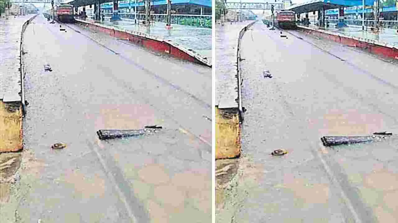 రైల్వేస్టేషన్లోకీ నీరు.. రైళ్లు ఆలస్యం