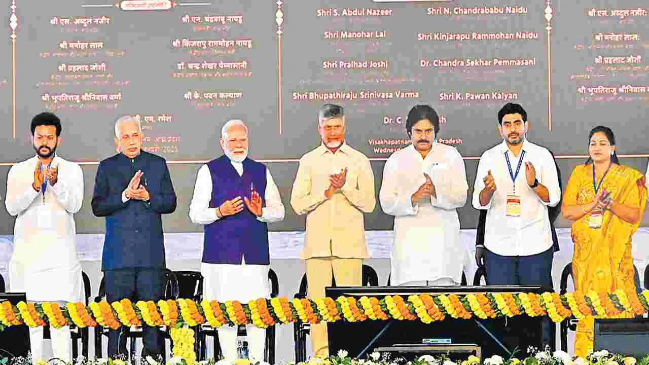 వివిధ ప్రాంతాల ప్రజల దశాబ్దాల కలలు నేరవేర్చేలా... రాష్ట్రాభివృద్ధికి ఊతం ఇచ్చేలా... వివిధ ప్రాంతాలను అనుసంధానం చేసేలా జాతీయ రహదారులు, రైల్వే డబ్లింగ్, విద్యుదీకరణ ప్రాజెక్టులు... రాష్ట్రానికి పెట్టుబడులు ఆకర్షించి, లక్షల మందికి ఉపాధి కల్పించేందుకు పారిశ్రామిక హబ్లు... ఇలా రూ.2,08,548 కోట్ల విలువైన ప్రాజెక్టులకు ఒకేరోజు ప్రధాని నరేంద్ర మోదీ వర్చువల్గా శంకుస్థాపనలు, ప్రారంభోత్సవాలు చేశారు. పూర్తయిన పలు ప్రాజెక్టులను జాతికి అంకితం చేశారు. బుధవారం విశాఖపట్నంలోని ఆంధ్ర విశ్వవిద్యాలయం ఇంజనీరింగ్ కళాశాల మైదానంలో ఈ కార్యక్రమం జరిగింది. ప్రాజెక్టులన్నీ పూర్తయితే కోట్లాది రూపాయల పెట్టుబడులు రాష్ట్రానికి రానున్నాయి. లక్షలాది మందికి ప్రత్యక్షంగా, పరోక్షంగా ఉద్యోగ, ఉపాధి అవకాశాలు లభించనున్నాయి. అలాగే వివిధ ప్రాంతాల మధ్య ప్రయాణ సమయం తగ్గించేలా రాకపోకలకు ఎంతో సౌకర్యంగా ఉంటుంది. తాజాగా మోదీ శంకుస్థాపన, ప్రారంభోత్సవాలు చేసిన ప్రాజెక్టుల గురించి క్లుప్తంగా...