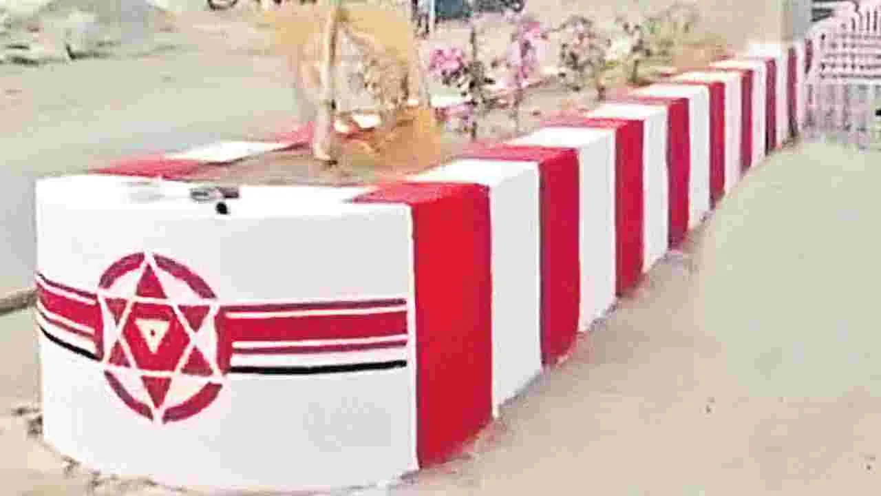 Jana Sena Colors Adorn Road: డివైడరుకు జనసేన రంగులు