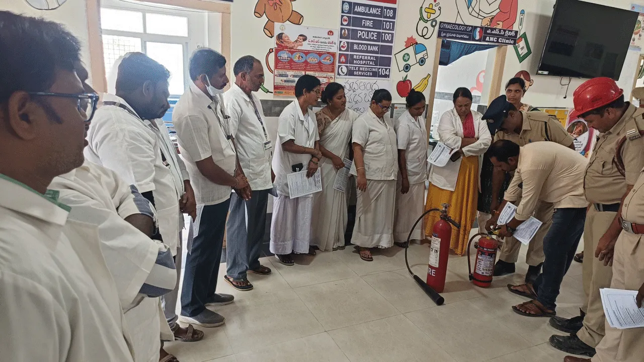 ప్రభుత్వ ఆసుపత్రిలో విన్యాసాలు చేసి చూపించిన ఫైర్ సిబ్బంది