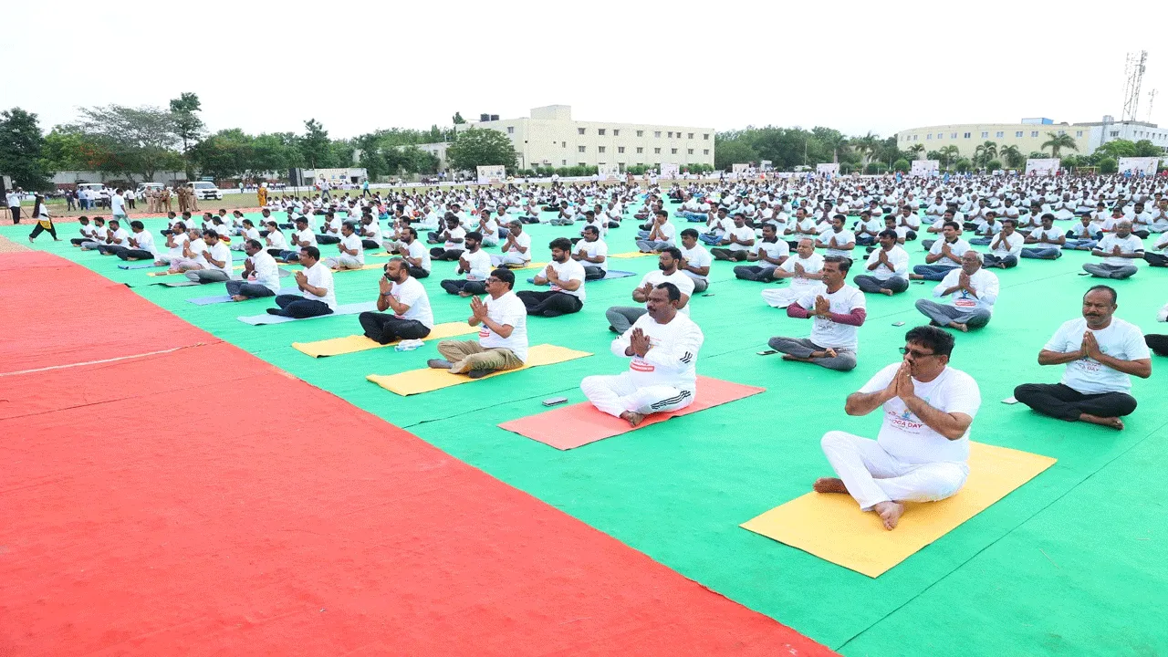 బద్వేలు/టౌన, జూన 21 (ఆంధ్రజ్యోతి): ప్రతి ఒక్కరూ యోగాను దినచర్యగా మార్చుకొని మా నసిక, శారీరక ఒత్తిళ్లను దూరం చేసుకోవాలని బద్వేలు ఆర్డీఓ చంద్రమోహన పేర్కొన్నారు. శనివారం 11వ అంతర్జాతీయ యోగాదినోత్స వంలో భాగంగా కేంద్రరాష్ట్ర ప్రభుత్వాలు ఇచ్చిన పిలుపుమేరకు బద్వేలు పట్టణంలోని ఎస్బీవీ ఆర్ డిగ్రీకళాశాల మైదానంలో కనీవిని ఎరుగని రీతిలో సుమారు 5వేల మందితో యోగాంధ్ర కార్యక్రమాన్ని నిర్వహించారు. ఈ కార్యక్రమం లో ఆర్డీవో చంద్రమోహనరెడ్డి, డీఎస్పీ రాజేం ద్రప్రసాద్, నియోజకవర్గ టీడీపీ ఇనచార్జి రితేష్ కుమార్రెడ్డి, మున్సిపల్ కమిషనర్ నరసింహా రెడ్డి, తహసీల్దార్లు ఉదయభాస్కరరాజు, త్రిభు వనరెడ్డిలు పాల్గొని యోగాసనాలను చేశారు. కార్యక్రమంలో డీసీసీబీ చైర్మన సూర్యనారాయణ రెడ్డి, కూటమి నాయకుడు బొజ్జా రోశన్న, ఆర్యవైశ్య కార్పొరేషన చైర్మన వెంకటసుబ్బయ్య, ప్రభుత్వ, ప్రైవేటు పాఠశాలల కరస్పాండెంట్లు, హెడ్మాస్టర్లు, విద్యార్తిని, విద్యార్థులు పాల్గొన్నారు.
