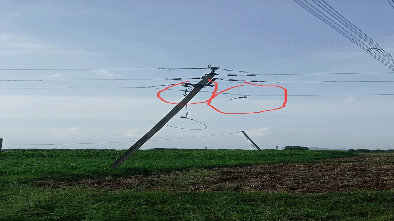 మండల పరిధిలోని కడప-కర్నూలు జాతీయ రహదారి సమీపంలో విద్యుత స్తంభానికి 11 కేవీ వైర్లు అతుకులతో వేలాడుతున్నాయి.