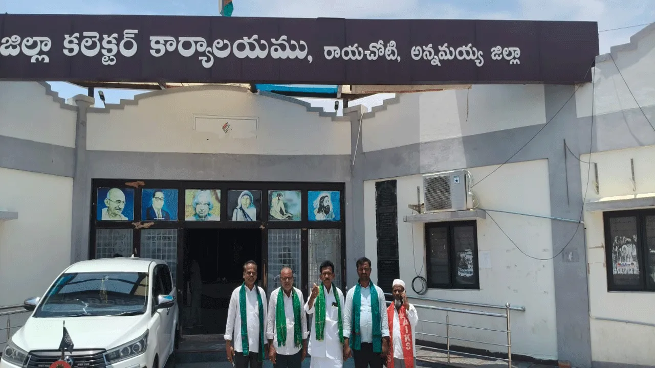 జిల్లా వ్యా ప్తంగా నష్టపోయిన మామిడి రైతులకు కేంద్ర, రాష్ట్ర ప్రభుత్వాలు వెంటనే ఇ న్సూరెన్స అందించాలని ఆంధ్రప్రదేశ రై తు సంఘం జిల్లా ప్రధాన కార్యదర్శి వంగిమళ్ల రంగారెడ్డి ఆధ్వర్యంలో రైతులు కలెక్టరేట్ ఎదుట నిరసన తెలిపి కలెక్టర్ శ్రీధర్కు వినతిపత్రం అందించారు.