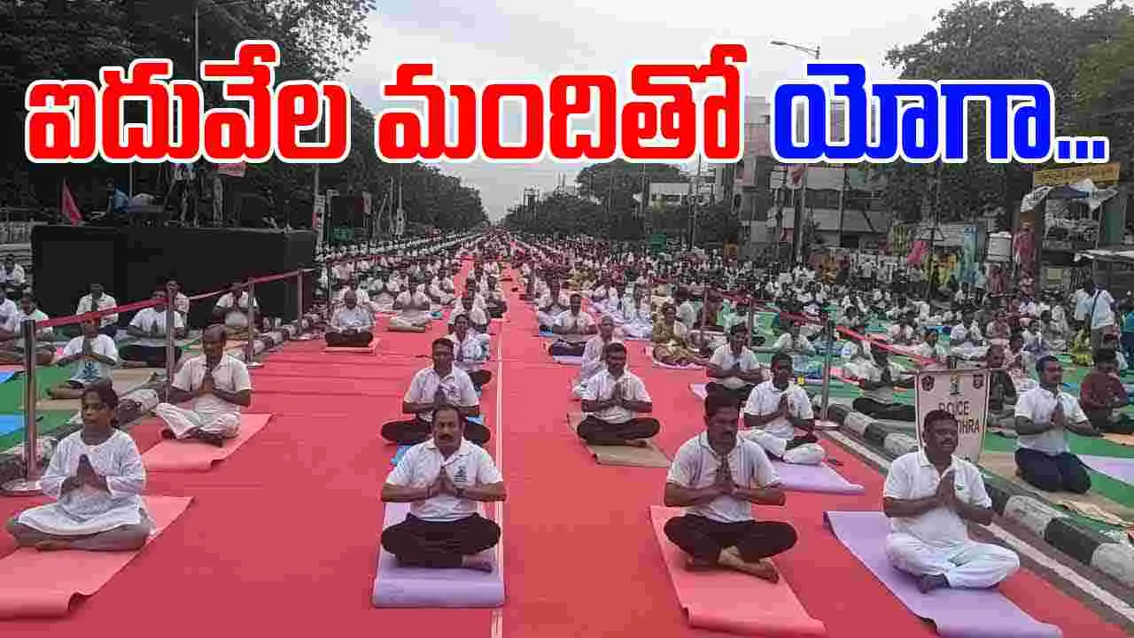 Yoga: నగరంలోని బీఆర్టీఎస్ రోడ్లో ఐదు వేల మంది (5 Thousand Participants)తో ఎన్టీఆర్ పోలీసు కమిషనరేట్ (NTR Police Commissionerate) ఆధ్వర్యంలో యోగాంధ్ర కార్యక్రమం (Yog Andhra Program) జరుగుతోంది. చీఫ్ సెక్రటరీ కె.విజయానంద్ (CS K. Vijayanand), ఐఎయస్ అధికారులు (IAS Officers) కృష్ణబాబు, మీనా, వీర పాండ్యన్, కలెక్టర్ లక్ష్మీశా, పోలీసు కమిషనర్ రాజశేఖర్ బాబు తదితరులు ఈ కార్యక్రమంలో పాల్గొన్నారు. ఇంకా డీసీపీలు, ఏసీపీలు, సీఐలు, ఎస్ఐలు, వివిధ విభాగాలకు చెందిన పోలీసు సిబ్బంది పెద్ద సంఖ్యలో హాజరయ్యారు.