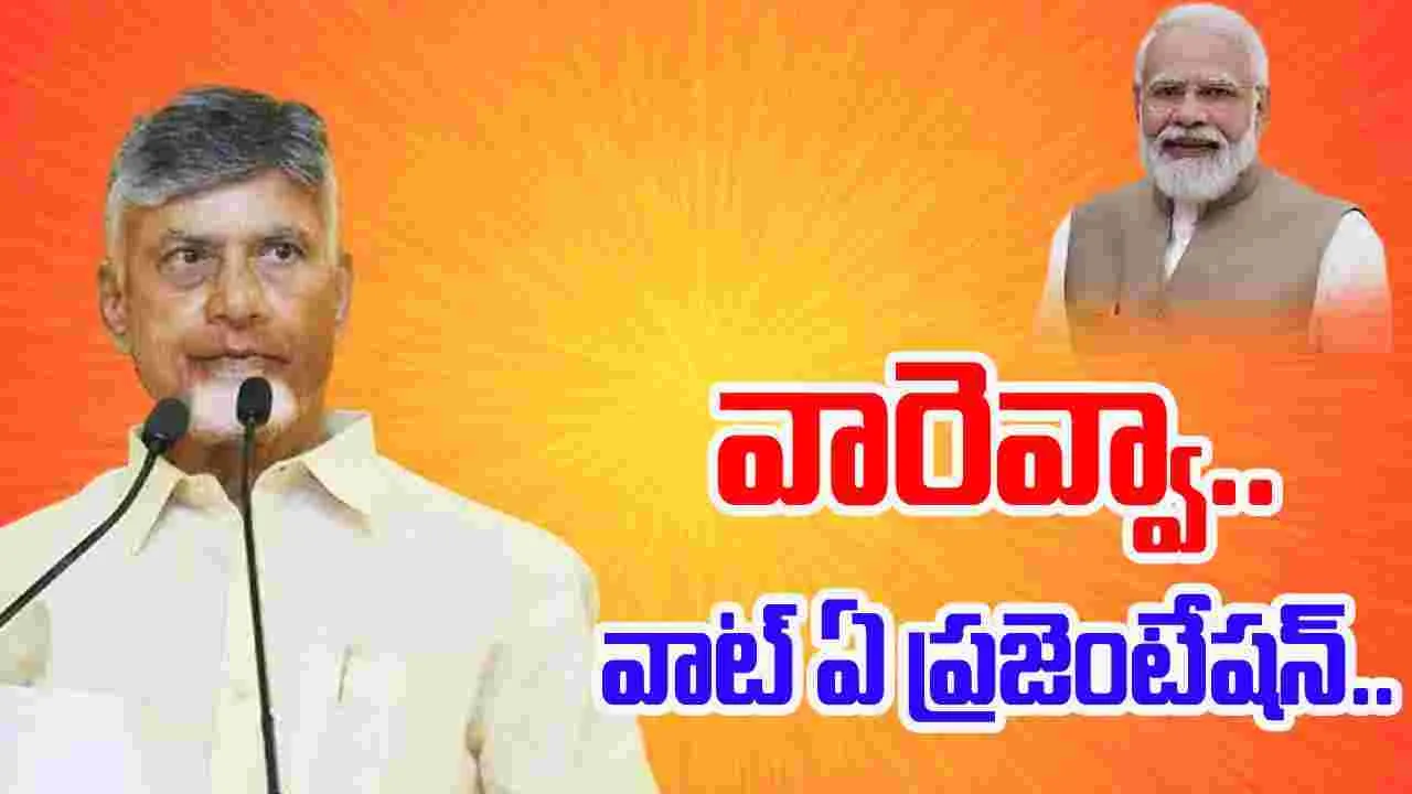 రాష్ట్రంలో అమలు చేస్తున్న సంక్షేమ, అభివృద్ధి కార్యక్రమాలను తన ప్రజెంటేషన్లో ఏపీ సీఎం ప్రస్తావించారు. 2.4 ట్రిలియన్ డాలర్ల ప్రగతి లక్ష్యంతో ఏపీ ప్రణాళికలు సిద్ధం చేసుకుంటున్నట్టు చంద్రబాబు వివరించారు. వికసిత్ భారత్ కల సాకారంతో స్వర్ణాంధ్రను సాధించేలా అడుగులు వేస్తున్నట్టు ప్రజెంటేషన్లో వివరించారు. రాష్ట్రంలో ఉన్న వనరులను తాము ఏ విధంగా సద్వినియోగం చేసుకుంటున్నామనే విషయాన్ని తన ప్రజంటేషన్లో తెలిపారు. అంతర్జాతీయ స్థాయి ప్రమాణాలకు అనుగుణంగా విశాఖను తీర్చిదిద్దనున్నట్టు వెల్లడించారు. విశాఖకు గ్లోబల్ హంగులు అద్దేలా నాలుగు జోన్ల ఏర్పాటుకు ప్రణాళికలు రూపొందిస్తున్నట్టు వివరించారు. విశాఖ మోడల్ను అమరావతి, తిరుపతి, గోదావరి, కర్నూలుకు విస్తరించేలా కేంద్రం సహకరించాలని ఈ సందర్భంగా ఏపీ సీఎం కోరారు.