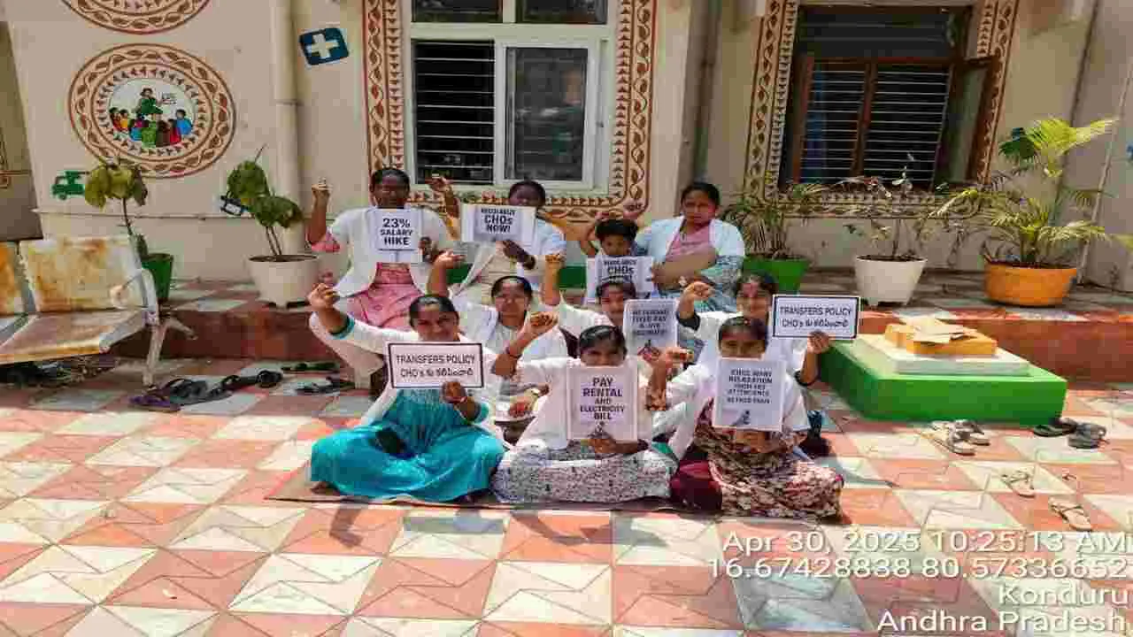 తమ సమస్యలు పరిష్కరించాలని సీహెచ్వోలు బుధవారం జి. కొండూరు పీహెచ్సీ ఎదుట బైఠాయించి ఎండలోనే నిరసన తెలిపారు.