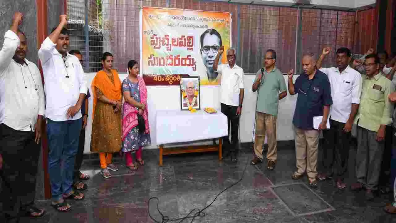 గవర్నర్పేట, మే 19(ఆంధ్రజ్యోతి): నిరాశ, నిస్పృహలకు లోనవుతున్న యువతకు ప్రత్యామ్నాయ ఆలోచనలు, స్ఫూర్తినివ్వడంలో మా ర్క్సిస్టు నేత పుచ్చలపల్లి సుందరయ్య మార్గదర్శి అని సీపీఎం రాష్ట్ర కార్యదర్శి వి.శ్రీనివాసరావు అన్నారు. ఎంజీ రోడ్డులోని పార్టీ రాష్ట్ర కార్యాలయం లో సోమవారం సుందరయ్య 40వ వర్ధంతి కార్యక్రమాన్ని నిర్వహిం చారు. సుందరయ్య చిత్రపటానికి నేతలు పూలమాలలు వేసి ఘన నివాళులర్పించారు. ప్రజానాట్య మండలి కళాకారులు విప్లవగేయాలు ఆలపించారు. సీపీఎం రాష్ట్ర కార్యదర్శి వర్గ సభ్యురాలు కె.సుబ్బరావమ్మ, పా ర్టీ రాష్ట్ర కార్యదర్శి వర్గ సభ్యుడు వి.రాంభూపాల్, నాయకులు కె.ఉమామహేశ్వరరావు, గేయానంద్, ఎస్. అనిల్ తదితరులు పాల్గొన్నారు.