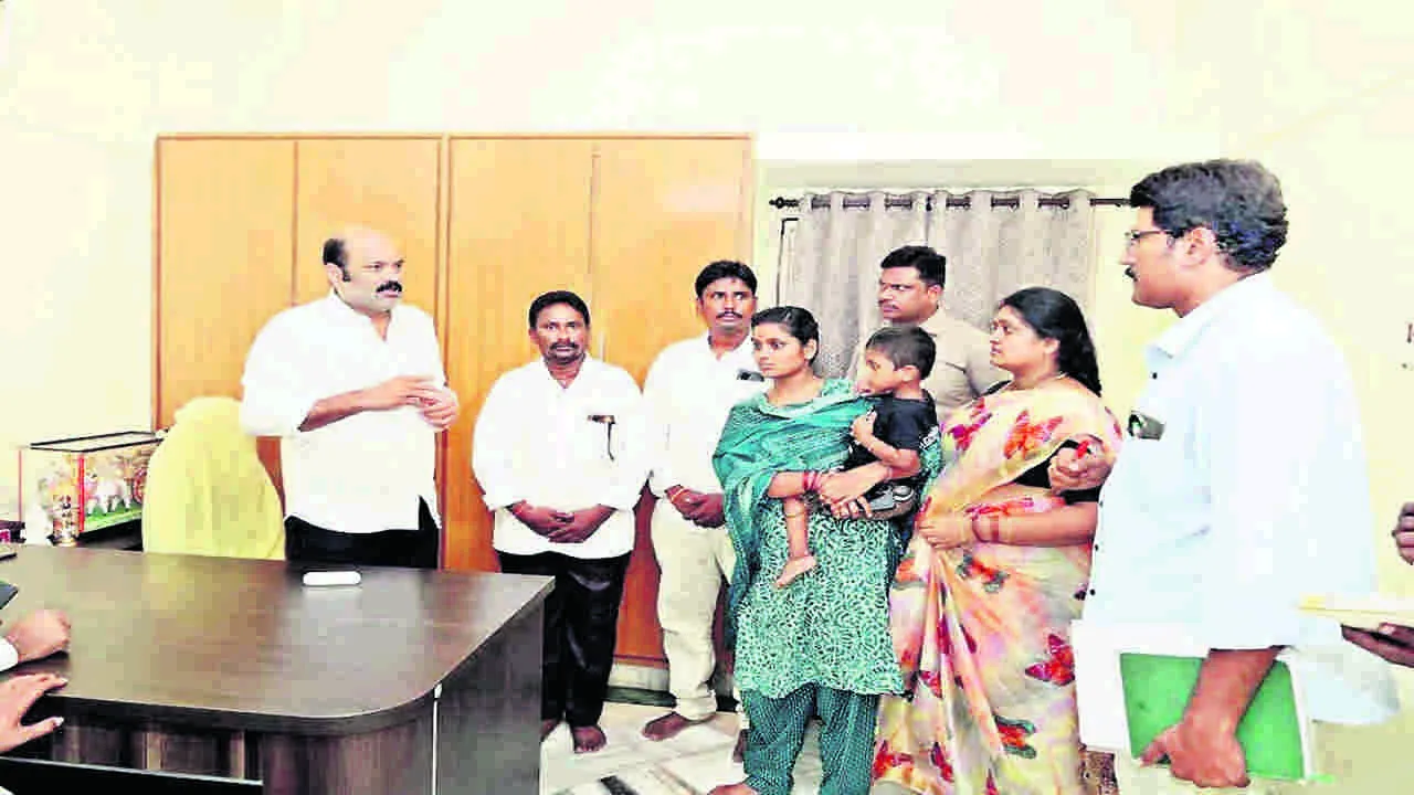 మృతుడు మరీదు గోవిందులు కుటుంబ సభ్యులతో మాట్లాడుతున్న ఎమ్మెల్యే యార్లగడ్డ వెంకట్రావు