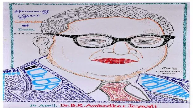 జగ్గయ్యపేట రూరల్, ఏప్రిల్ 13(ఆంధ్రజ్యోతి): భారత రాజ్యాంగ నిర్మాత డాక్టర్ బీఆర్ అం బేడ్కర్ జయంతిని పురస్క రించు కుని ఇంగ్లీష్ భషలోని నాలుగు ర కాల ఆల్ఫాబెట్స్ చిహ్నాలతో తిరు మలగిరి మండల పరిషత్ పాఠ శాల ఉపాధ్యాయుడు ప్రసా ద్బా బు గీసిన అంబేడ్కర్ చిత్రపటం ఆకట్టుకుంది.