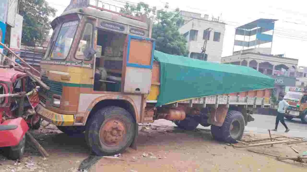 జగ్గయ్యపేటలో గురువారం అర్ధరాత్రి జరిగిన ప్రమాదంలో ప్రాణాలు కోల్పోయిన వ్యక్తిని పోలీసులు గుర్తించారు. రంగారెడ్డి జిల్లా తలకొండపల్లి మండలం చెన్నంపల్లికి చెందిన రాజు (43) ఎస్ఆర్ఎంటీ ట్రాన్స్పోర్టు వాహనం డ్రైవర్గా 15 ఏళ్లుగా పనిచేస్తున్నాడు. గురువారం ఉదయం హైదరాబాద్ నుంచి విజయవాడకు బయల్దేరాడు. జగ్గయ్యపేటలోని కార్యాలయంలో పనిచూసుకుని విజయవాడకు వెళ్తుండగా, ముందు వెళ్తున్న కారు టైర్ పంక్చరై డివైడర్ను ఢీకొని రోడ్డుకు అడ్డంగా తిరిగింది. దాని వెనుక ఉన్న ఆటోను ఢీ కొట్టకుండా ఉండేలా రాజు లారీ ఒక్కసారిగా పక్కకు తప్పించాడు. ఈ క్రమంలో లారీ పల్టీ కొట్టింది. ఆటోలో ఉన్న రూపన పుల్లయ్య, శివరాత్రి వెంకటేశ్వరరావుకు తీవ్ర గాయాలయ్యాయి. డ్రైవర్ రాజు అక్కడికక్కడే చనిపోయాడు.