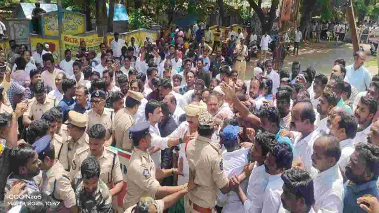 తమను కార్యాలయంలోకి రానివ్వలేదని వైసీపీ నిరసన