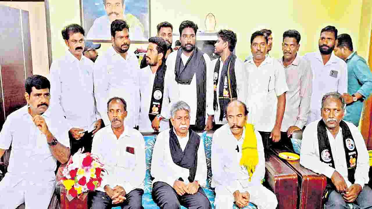 కొవ్వూరు, మే 19(ఆంధ్రజ్యోతి): ‘మాజీ మంత్రి కేఎస్ జవహర్కు ఎస్సీ కమిషన్ చైర్మన్ పదవి రావడం... మొదటిసారి మా జాతికి దక్కిన గౌరవం భావిస్తున్నాం’ అని ఎమ్మార్పీఎస్ వ్యవస్థాపకుడు మంద కృష్ణ మాదిగ అన్నారు. తూర్పుగోదావరి జిల్లా కొవ్వూరులో రాష్ట్ర ఎస్సీ కమిషన్ చైర్మన్ కేఎస్ జవహర్ను సోమవారం ఆయన నివాసంలో మర్యాద పూర్వకంగా కలుసుకుని మాట్లాడారు. ‘దళితుల్లో 59 కులాలు ఉన్నాయి. అయితే ప్రధానంగా రెండు కులాల్లో... ఒకరు అవకాశం పొందిన కులంగా, మరొకరు అవకాశం దక్కని కులంగా చరిత్రలో నమోదైపోయింది. ఈ మేరకు మా జాతి బిడ్డల ఆవేదనను ప్రభుత్వం దృష్టికి తీసుకెళ్లాం. మా ఆవేదనను అర్థం చేసుకున్న సీఎం చంద్రబాబు పలు సందర్భాల్లో కమిషన్ చైర్మన్ కేటాయిస్తానని చెప్పారు. 2024 ఎన్నికల విజయంలో మాదిగలు ప్రధాన పాత్ర పోషించారని పలు ఉపన్యాసాల్లోనూ చెప్పారు. ఎంతమంది పట్టుబట్టినా ఇచ్చిన మాటకు కట్టుబడి పార్టీకి, జాతికి విధేయుడిగా నిలిచిన సోదరుడు, మాజీ మంత్రి జవహర్ను కమిషన్ చైర్మన్గా నియమించారు’ అని కృష్ణ మాదిగ అన్నారు. జవహర్ మాట్లాడుతూ... ‘అణగారిన వర్గాల అభ్యున్నతే లక్ష్యంగా వర్గీకరణ పోరాటంలో కృష్ణ మాదిగ కృషి మరువలేనిది. పద్మశ్రీ రావడంతో అభినందనలు తెలియజేయడానికి ఆహ్వానించా. ఎటువంటి రాజకీయం లేదు’ అని అన్నారు. అనంతరం కృష్ణ మాదిగను జవహర్ కుటుంబీకులు శాలువా కప్పి పూలమాలలతో సత్కరించారు.