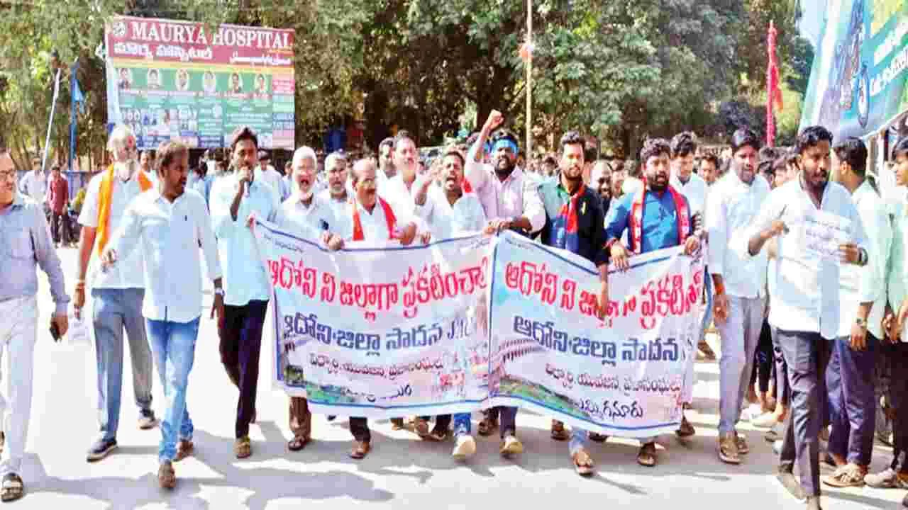 ఆదోని జిల్లా సాధన కోసం వివిధ వర్గాల ప్రజలు రోడ్లపైకి వచ్చి నిరసనలు చేపడుతున్నారు.