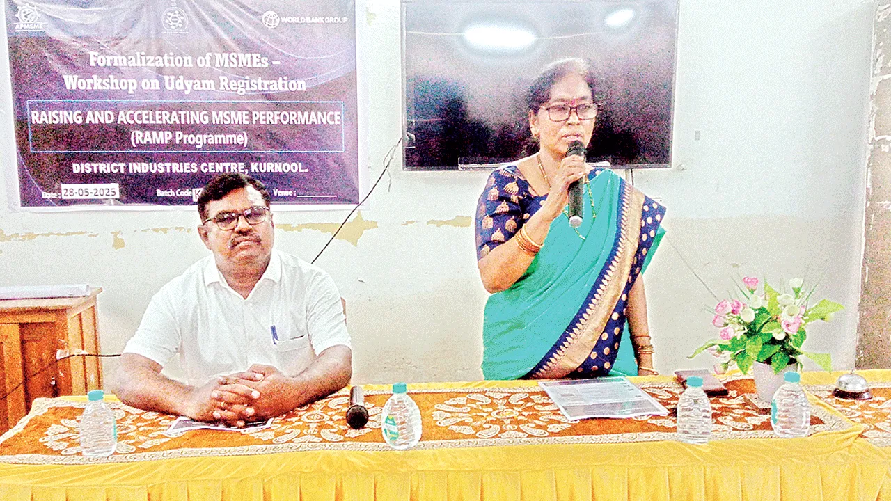 కర్నూలు రాజ్విహార్ సర్కిల్ మే 28 (ఆంధ్రజ్యోతి): ఉద్యం పోర్టల్లో పేర్లు నమోదు చేసుకోవడంతో భవిష్యత్తులో వ్యాపారులు సైతం పారిశ్రామికవేత్తలుగా అభివృద్ధి చెందే అవకాశ ముందని జిల్లా పరిశ్రమల కేంద్రం జనరల్ మేనేజర్ అరుణ అన్నారు. బుధవారం కార్యాలయంలో సూక్ష్మ, చిన్న తరహ పరిశ్రమల ప్రతినిధులతో ఉద్యం పోర్టల్పై అవగాహన ఏర్పాటుచేశారు. ఉద్యం పోర్టల్లో పేర్లను నమోదు చేసుకోవటంతో ప్రభుత్వం ఇచ్చే ప్రోత్సాహకాలు, రాయితీలను పొందవచ్చు అన్నారు. కొన్ని సందర్భాల్లో టెండర్లలో పాల్గొనేవారికి ఉద్యం నమోదు ప్రా మాణికంగా, అర్హతగా చూస్తున్నారన్నారు. అందువల్ల సూక్ష్మ, చిన్నతరహ పరిశ్రమల నిర్వాహకులు తమ పేర్లను ఇందులో తప్పనిసరిగా నమోదు చేసుకోవాలని సూచించారు. రాబోయే రోజుల్లో ప్రభుత్వాలు ఉద్యం పోర్టల్కు అధిక ప్రాధాన్యం ఇవ్వనున్నట్లు ఆమె పేర్కొ న్నారు. కార్యక్రమంలో పరిశ్రమల అభివృద్ధి అధికారి డానియేలు తదితరులు పాల్గొన్నారు.