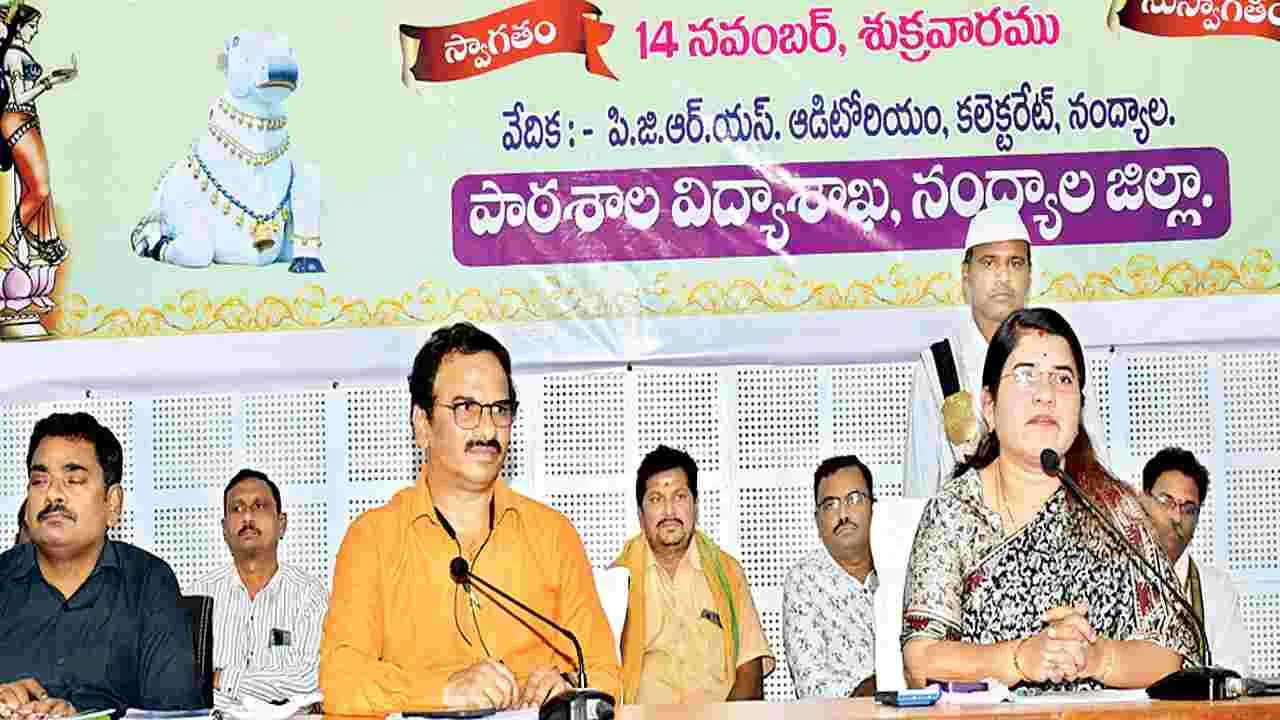 నంద్యాల నూనెపల్లి, నవంబరు 14 (ఆంధ్రజ్యోతి): ప్రతి పాఠశా లలో పరిశుభ్రత కచ్చితంగా పాటించాలని కలెక్టర్ రాజకుమారి ఆదేశిం చారు. శుక్రవారం కలెక్టరేట్లోని పీజీఆర్ఎస్ హాలులో ఆయా పాఠశాలల హెచ్ఎంలు, ఎంఈవోలతో కలెక్టర్ సమావేశం నిర్వహించారు. ఈ సందర్భం గా ఆమె మాట్లాడుతూ విద్యార్థుల భవిష్యత్తును ఉజ్వలంగా తీర్చిదిద్దడం ఉపాధ్యాయుల చేతుల్లోనే ఉందన్నారు. పదో తరగతి ఫలితాలు, విద్యార్థుల హాజరు, పాఠశాల పరిశుభ్రత, మధ్యాహ్న భోజనం, అపార్ ఐడీ తదితర అంశాలపై చర్చించారు. విద్యార్థుల వ్యక్తిగత పరిశుభ్రత, తొటి విద్యార్థులతో ఎలా మెలగాలి, గురువులను గౌరవించడం వంటి అంశాలపై కూడా అవగాహన కల్పించాలన్నారు. అదే విధంగా, విద్యార్థులు, ఉపాధ్యాయులు వంద శాతం హాజరు నమోదు చేయాలన్నారు. వచ్చేనెల జరగనున్న మెగా పేరెంట్స్- టీచర్స్ మీటింగ్కు పూర్తిస్థాయిలో సిద్ధమవ్వాలని కలెక్టర్ ఆదేశించారు. డీఈవో జనార్దన్రెడ్డి మాట్లాడుతూ ప్రతి విద్యార్థిని విద్యావంతునిగా తీర్చిదిద్దడంలలో ఉపాధ్యాయుల పాత్ర కీలకమన్నారు. సమావేశంలో ఎస్ఎస్ఏ పీవో ప్రేమనాథ్ కుమార్ తదితరులు పాల్గొన్నారు.