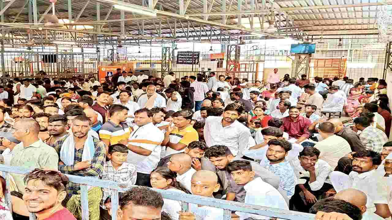 శ్రీశైలం భ్రమరాంబికా మల్లికార్జునస్వామి ఆలయంలో మల్లన్న దర్శనం కోసం భక్తులు అధిక సంఖ్యలో తరలివచ్చారు.