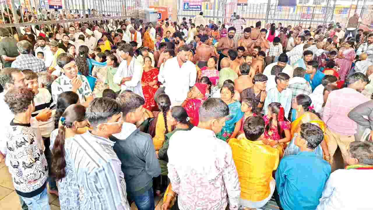 శ్రీశైలం, డిసెంబరు 8 (ఆంధ్రజ్యోతి) : శ్రీశైల మల్లన్నను దర్శించుకునేందుకు వస్తున్న యాత్రికులతో క్షేత్రమంతా రద్దీగా మారింది. వారాంతపు సెలవులు పూర్తయినప్పటికీ గర్భాలయ స్పర్శ దర్శనం కోసం వివిధ ప్రాంతాల నుండి భక్తులు క్షేత్రానికి చేరుకుంటూనే ఉన్నారు. సోమవారం తెల్లవారుజామున తలనీలాలు సమర్పించుకుని కృష్ణమ్మ ఒడిలో నదీ స్నానాలు చేసి పసుపు కుంకుమలు గంగమ్మకు సారెలు సమర్పించుకున్నారు. భక్తులందరికీ అలంకార దర్శనమే ఉన్నందున వీఐపీ టిక్కెట్టు పొందిన వారికి గంట సమయం, అతి శీఘ్ర దర్శనం వారికి రెండు గంటలు, శీఘ్ర, ఉచిత దర్శనం వారికి కూడా రెండు గంటలకు పైగా ఉభయ దేవాలయాలలో దర్శనాలు ముగిశాయని ఆలయ అధికారులు చెప్పారు. అదే విధంగా 500, 300 టిక్కెట్లు పొందిన భక్తుల ఉచిత లడ్డూ ప్రసాదాన్ని పొందున్నట్లు చెప్పారు. సాయంత్ర కళారాధన వేదికపై కడప తాళ్లపాక అన్నమయ్య జిల్లాకు చెందిన బాలరాజు, పాండురంగ రాజుల బృందం భజనలు చేసింది. హైదరాబాద్కు చెందిన కూచిపూడి కళాక్షేత్రం వారి నృత్య ప్రదర్శన ఆకట్టుకుంది.