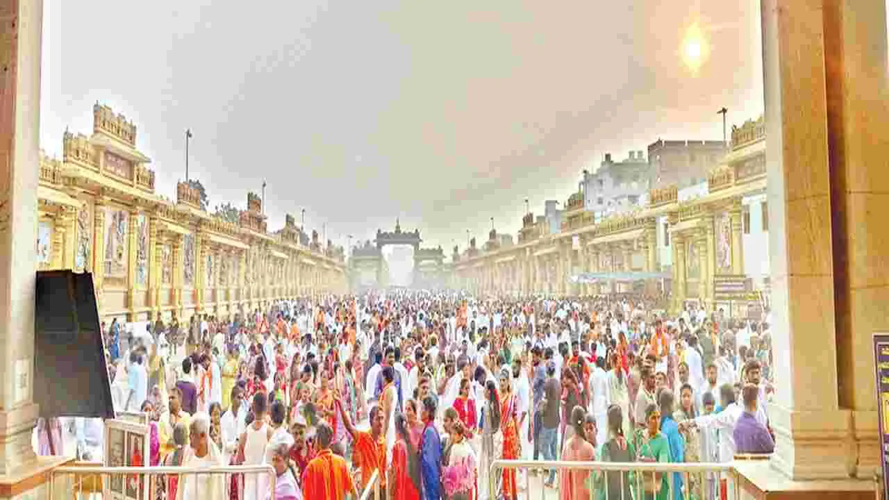 మంత్రాలయం, డిసెంబరు 7(ఆంధ్రజ్యోతి): మంత్రాల యానికి భక్తులు పోటెత్తారు. ఆదివారం సెలవు దినం కావటంతో దక్షణాది రాష్ర్టాల నుంచి వేలాది మంది భక్తులు తరలివచ్చారు. భక్తులు అధిక సంఖ్యలో తరలిరావడంతో మఠం అతిఽథిగృహలు, ప్రైవేట్ లాడ్జీలు భక్తులతో నిండిపోయాయి. అద్దె రూములు దొరకక మధ్వమార్గ్ కారిడార్ ముందే భక్తులు బసచేశారు. అన్నపూర్ణ భోజనశాల, మహాముఖద్వారం, ప్రధాన రోడ్లు, రాఘవేంద్ర సర్కిల్, నదీతీరంలో కోలాహలం నెలకొంది. గ్రామదేవత మంచాలమ్మను దర్శించుకొని రాఘవేంద్రస్వామి మూల బృందావనానికి ప్రత్యేక పూజలు నిర్వహించి మొక్కులు తీర్చుకున్నారు. క్యూలైన్న్లు, పరిమళప్రసాదం వద్ద భక్తులతో సందడిగా మారింది. భక్తుల రద్దీని దృష్టిలో ఉంచుకొని శ్రీమఠం అధికారులు ప్రత్యేక ఏర్పాట్లు చేపట్టారు. సొంత వాహనాల్లో వచ్చిన భక్తులు ప్రధాన రహదారిపై ఇరువైపులా పార్కింగ్ చేయడంతో ట్రాఫిక్ సమస్యతో భక్తులు, గ్రామస్థులు ఇబ్బందులు పడ్డారు.