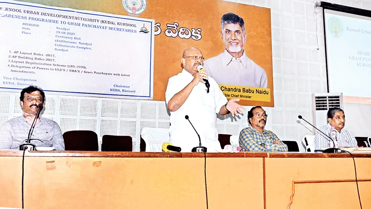 నంద్యాల ఎడ్యుకేషన, ఆగస్టు 19 (ఆంధ్రజ్యోతి): అనధికారిక లే అవుట్లలో ఇళ్ల నిర్మాణాలకు అనుమతులు ఇవ్వొద్దని కుడా అధ్యక్షు డు సోమిశెట్టి వెంకటేశ్వర్లు అధికారులను ఆదేశించారు. నంద్యాల కలెక్ట రేట్లోని పీజీఆర్ఎస్ హాల్లో జిల్లా పంచాయతీరాజ్ అధికారులతో మంగళవారం పలు పథకాలపై ఉద్యోగులకు నిర్వహించిన అవగా హనా సదస్సును ఆయన ప్రారంభించారు. ఈ సందర్భంగా సోమిశెట్టి వెంకటేశ్వర్లు మాట్లాడుతూ ప్రభుత్వం అనధికారిక లే అవుట్లు, ప్లాట్ల క్రమబద్ధీకరణ పథకాన్ని పొడిగిస్తూ సవరణ ఉత్తర్వులు తీసుకువచ్చిం దన్నారు. 31-12-2020 నాటికి దరఖాస్తు చేసుకోలేని ప్లాట్ యజమా నులకు ప్రయోజనం కల్గించేలా 30-06-2025 కంటే ముందు వేసిన అనధికారిక లే అవుట్లలో రిజిష్టర్ అయిన అనధికారిక ప్లాట్లను ప్రణా ళికాబద్ధంగా తీసుకు రావడానికి ఎల్ఆర్ఎస్ పథకాన్ని కొనసాగిసు ్తన్నామన్నారు. గ్రామ పంచాయతీల్లోని అనధికారిక లే అవుట్లను ఎల్ ఆర్ఎస్ స్కీము ద్వారా దరఖాస్తు చేసుకునేలా చర్యలు తీసుకోవాల న్నారు. సమావేశంలో ప్లానింగ్ అధికారులు మోహనకుమార్, విజయ భాస్కర్, సహాయ ప్లానింగ్ అధికారి శశికళ పాల్గొన్నారు.