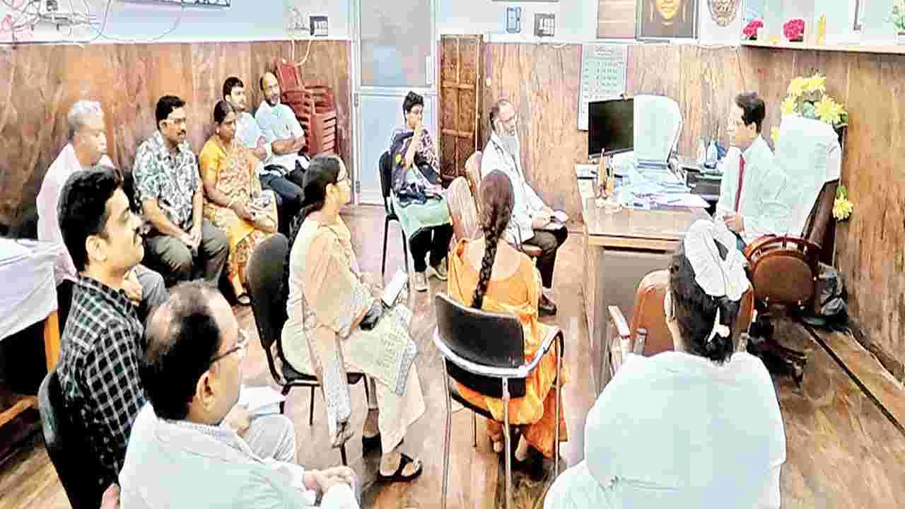 కర్నూలు హాస్పిటల్, మే 23 (ఆంధ్రజ్యోతి): కొవిడ్ వైరస్పై వైద్యులు, సిబ్బంది అప్రమత్తంగా ఉండాలని జీజీహెచ్ సూపరింటెండెంట్ డాక్టర్ కే. వెంకటేశ్వర్లు ఆదేశించారు. శుక్రవారం కడప రిమ్స్ హాస్పిటల్లో నంద్యాల జిల్లాకు చెందిన ఓవ్యక్తికి కరోనా పాజిటివ్ అని నిర్ధారణ కావడంతో కర్నూలు జీజీహెచ్ అధికారులు అప్రమత్తమయ్యారు. డైరెక్టర్ ఆఫ్ మెడికల్ ఎడ్యుకేషన్(డీఎంఈ) ఆదేశాల మేరకు జీజీహెచ్ సూపరింటెండెంట్ డా.కే. వెంకటేశ్వర్లు తన చాంబరులో కొవిడ్ వైరస్ను ఎదుర్కొవడానికి అనుసరించాల్సిన ప్రోటోకాల్పై వైద్యులతో సమీక్ష నిర్వహించారు. ఈ సమీక్షలో సీఎస్ఆర్ఎంవో డా.బీవీ రావు, ఫల్మనాలజీ, అనస్థీషియా, మెడిసిన్, పీడీయాట్రిక్, ఎమర్జెన్సీ, మెడిసిన్, మైక్రోబయాలజీ వైద్యులు పాల్గొన్నారు. ఈ సందర్భంగా సూపరింటెండెంట్ మాట్లాడుతూ ఆసుపత్రిలో మాస్కులు, పీపీఈ కిట్లు, యాంటి వైరల్ డ్రగ్స్ అత్యవసర మందులు అందుబాటులో ఉండేలా డ్రగ్స్ స్టోర్ మెడికల్ ఆఫీసర్ డా. శారదను ఆదేశించారు. ఆక్సిజన్ను రోగులకు అందుబాటులో ఉండేలా చర్యలు తీసుకోవాలని అనస్థీషియా వైద్యులకు సూచించారు. వైద్యులతో కూడిన ర్యాపిడ్ రెస్పాన్స్ టీమ్లను సిద్దం చేసుకోవాలని సంబంధిత హెచ్వో డీలను ఆదేశించారు. పాత గైనిక్ వార్డులో కొవిడ్ ఐసోలేషన్ వార్డును సిద్దం చేయాలని అనస్థీషియా ప్రొఫెసర్ డా. సుధీర్ను ఆదేశించారు. సమీక్షలో జనరల్ మెడిసిన్ హెచ్వోడీ డా. ఇక్బాల్ హుశేన్, అనస్థీషియా హెచ్వోడీ డా. విశాల, మైక్రోబయాలజీ ప్రొఫెసర్ డా.నాగలక్ష్మి, అసిస్టెంట్ ప్రొఫెసర్ డా. విజయలక్ష్మి, ఎమర్జెన్సీ మెడిసిన్ అసిస్టెంట్ ప్రొఫెసర్ డా. సుబ్రహ్మణ్యం, డా. కిరణ్ కుమార్ పాల్గొన్నారు.