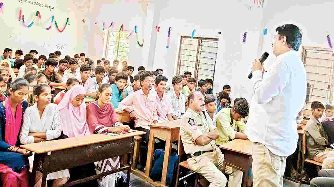 కౌతాళం, అక్టోబరు 9(ఆంధ్రజ్యోతి): విద్యార్థులు డ్రగ్స్ జోలికి వెళ్లి జీవితాన్ని నాశనం చేసుకోవద్దని, డ్రగ్స్కు దూరంగా ఉండి సంతోషకరమైన జీవితాలను గడుపుదామని కర్నూలు సెట్కూరు సీఈవో వేణుగోపాల్ పిలుపునిచ్చారు. కౌతాళం ప్రభుత్వ జూనియర్ కళాశాలలో గురువారం విద్యార్థులకు మత్తు పదార్థాల వ్యసనం-పర్యవసనాలు, సైబర్ క్రైమ్ అంశాలపై అవగాహన సదస్సు నిర్వహించారు. సెట్కూర్ సీఈవో మాట్లాడుతూ నేటి సమాజం ఎదుర్కొంటున్న సమస్యలలో డ్రగ్స్ ఒకటని దీనివల్ల యువత చెడు వ్యసనాలకు బానిసలుగా మారి జీవితాలను నాశనం చేసుకుంటున్నారని అన్నారు. ఎక్కడైనా డ్రగ్స్ విక్రయిస్తే 1972కు సమాచారం అందించాలన్నారు. అనంతరం కౌతాళం ఏఎస్ఐ రమణా రెడ్డి మాట్లాడుతూ సైబర్ మోసాలతో ప్రజలు అప్రమత్తంగా ఉండాలని సూచించారు. సెల్ఫోన్లలకు సైబర్ మోసగాళ్ళు ఎస్ఎంఎస్ ద్వార లింక్లను పంపుతూ మోసాలు చేస్తుంటారని, కొత్త నెంబర్ల నుంచి సైబర్ మోసగాళ్లు ఫోన్ చేస్తే పోలీసు స్టేషన్లో ఫిర్యాదు చేయాలన్నారు. ముఖ్యంగా డ్రంకెన్ డ్రైవ్పై ఉక్కుపాదం మోపుతున్నట్లు తెలిపారు. రోడ్డు భద్రత నియమాలపై అవగాహన కల్పించారు. సమావేశంలో కళాశాల ఇన్చార్జి ప్రిన్సిపాల్ డేవిడ్, సెట్కూర్ పర్యవేక్షకుడు శ్యాం బాబు, హెడ్ కానిస్టేబుల్ సోమ్ల నాయక్, అధ్యాపకులు పాల్గొన్నారు.
