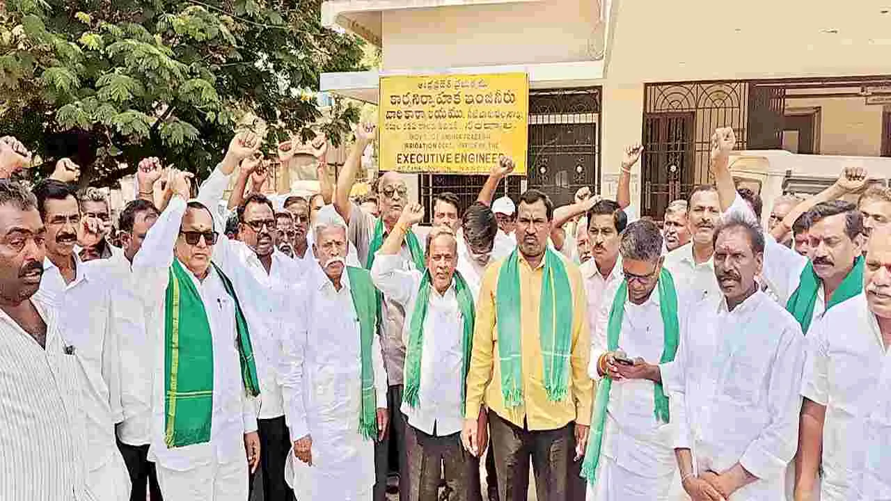 నంద్యాల మున్సిపాలిటీ, మార్చి 5 (ఆంధ్రజ్యోతి): కేసీ ఆయకట్టుకు తక్షణమే నీటిని విడుదల చేసి రైతాంగాన్ని ఆదుకోవాలని రాయలసీమ సాగునీటి సాధన సమితి డిమాండ్ చేసింది. బుధవారం సాధన సమితి సభ్యులు కేసీ కెనాల్ కార్యాలయం దగ్గర ధర్నా చేశారు. సమితి ఉపాధ్యక్షులు వైఎన్ రెడ్డి, ఏరువ రామచంద్రారెడ్డి మాట్లాడారు. కేసీ ఆయకట్టు పరిధిలో 70 ఎకరాల రబీ పంట సాగవుతోందని, ఏప్రిల్ 30 వరకు నీరందిస్తే తప్ప అన్నదాత మనుగడ సాగించే పరిస్థితులు లేవని ఆవేదన వ్యక్తం చేశారు. ఈ సంవత్సరం కేవలం 120 రోజుల వ్యవధిలో 1562 టీఎంసీల నీరు శ్రీశైలం ప్రాజెక్టులోకి చేరినప్పటికీ నీటి సరఫరా ఎందుకు ఆపారని ప్రశ్నించారు. తక్షణమే కేసీకి నీటిని పునరుద్ధరించి ఆయకట్టు రైతాంగానికి ఆదుకోవాలని కోరారు. ధర్నా అనంతరం కేసీ సూపరింటెండెంట్కు వినతి పత్రం ఇచ్చారు. కార్యక్రమంలో బెక్కెం చిన్న రామకృష్ణా రెడ్డి, డీవీ సుబ్బారెడ్డి, చంద్రశే ఖర్ రెడ్డి, వివిధ మండలాల రైతులు పాల్గొన్నారు.