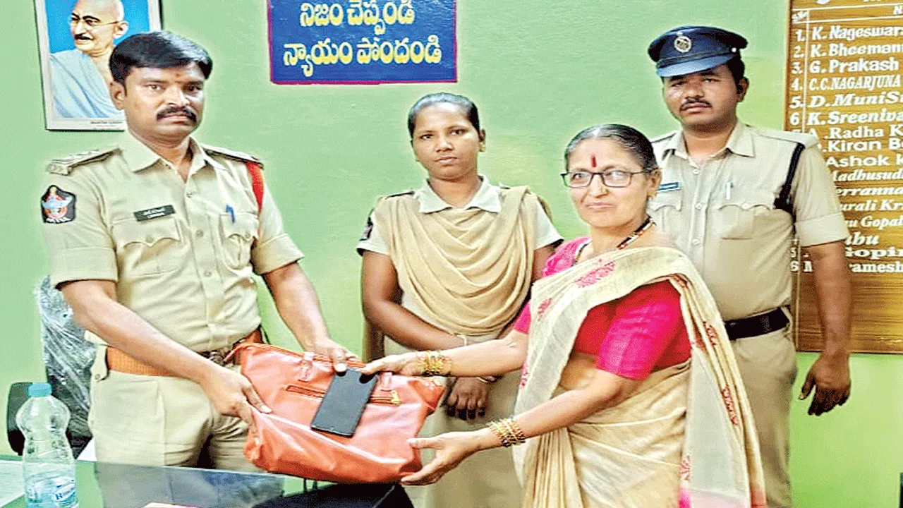 బస్సులో బ్యాగ్ను పోగొట్టుకున్న మహిళకు పోలీసులు బ్యాగ్ను అప్పగించారు.