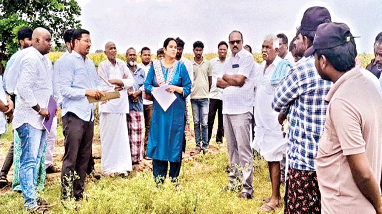 బస్తిపాడులో లేఅవుట్ను పరిశీలించిన జేసీ నవ్య