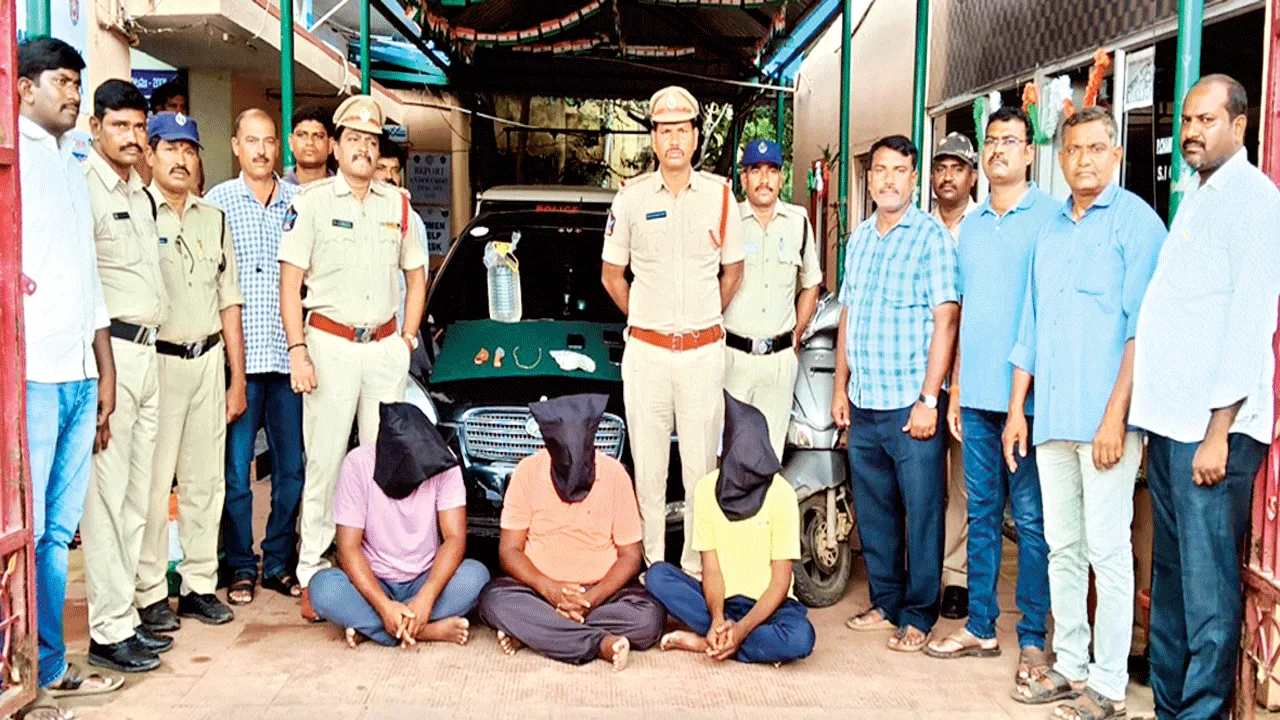 కర్నూలు క్రైం, ఆగస్టు 26 (ఆంధ్రజ్యోతి): నాలుగో పట్టణ పోలీస్ స్టేషన్ పరిధిలో ప్రేమ జంటలను బెదిరించి దోపిడీ చేస్తున్న ముగ్గురు నిందితులను పోలీసులు అరెస్టు చేశారు. సీఐ విక్రమసింహ, ఎస్ఐ మోహన్ కిషోర్ రెడ్డి తెలిపిన మేరకు వివరాలు ఇలా.. గోర్లగుట్ట నాగేంద్రుడు (ముజఫర్నగర్), కురువ రమేష్ (టీవీ9 కాలనీ), దూదేకుల మాలిక్ బాషా (దిన్నెదేవర పాడు)లు ముఠాగా ఏర్పడి ప్రేమ జంటలను వెంబడించి వారి ఫొటోలను తీసి బెదిరించేవారు. జంటల నుంచి డబ్బు, బంగారు బలవంతంగా లాక్కుని పరారయ్యేవారు. ఈ క్రమంలో ఈ నెల 19న ఓ యువతి తన స్నేహితుడితో కలిసి రాయలసీమ యూని వర్సిటీ వైపు వెళ్తుండగా.. హ్యాంగ్ అవుట్ హోటల్ వద్ద నిందితులు వీరి ఆటోను ఆపారు. యువతి అతని స్నేహితుని ఫొటోలు తీసి మీ తల్లిదండ్రులకు చెబుతామని కత్తితో బెదిరించి బంగారు గొలుసు, నగదు లాక్కుని పరారయ్యారు. మరో రెండు రోజుల తర్వాత ఆ యువతికి ఫోన్ చేసి మరోసారి డబ్బు డిమాండ్ చేశారు. దీంతో యువతి పోలీసులకు ఫిర్యాదు చేసింది. నిందితులను పోలీసులు గుర్తించి వారిని అరెస్టు చేశారు. నిందితుల నుంచి కారు, స్కూటీ, పది లీటర్ల సారా స్వాధీనం చేసుకున్నారు.