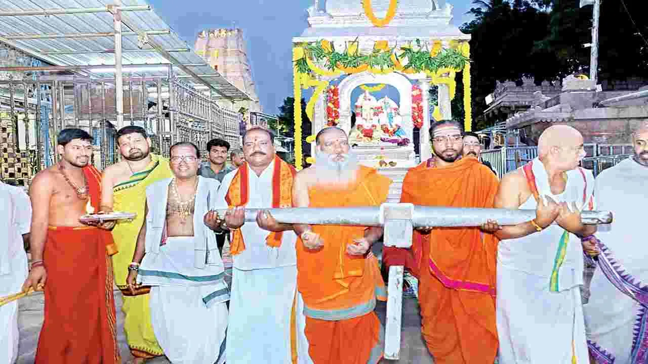 శ్రీశైలక్షేత్రంలో సోమవారం శ్రీశైల భ్రమరాంభ మల్లిఖార్జున స్వామి వార్లకు వైభవంగా ఊయల సేవ, వెండి రఽథోత్సవం నిర్వహించారు