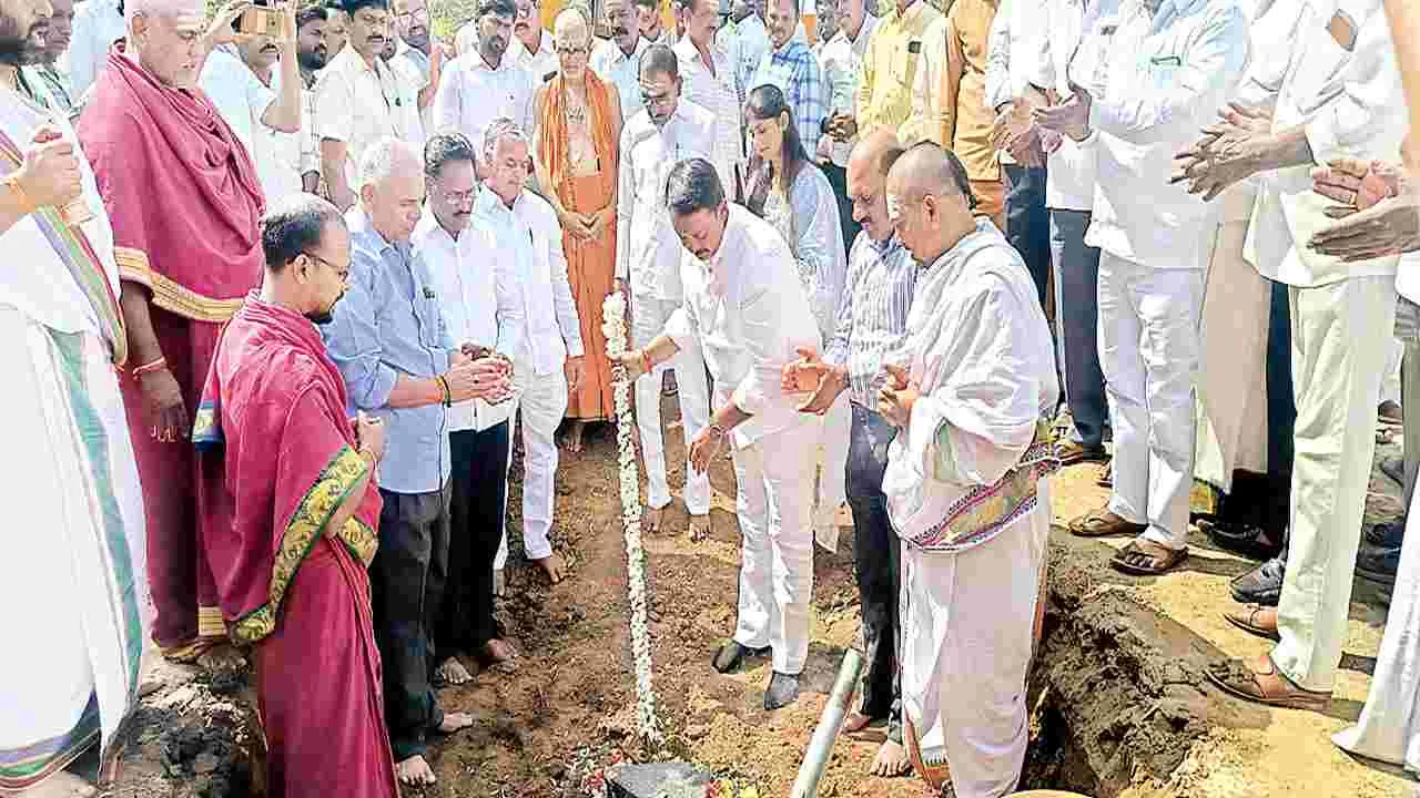 మహానంది, జనవరి 30(ఆంధ్రజ్యోతి): మహానంది ఆలయ అభివృద్ధికి రూ.300 కోట్లతో మాస్టర్ ప్లాన్ను రూపొందించినట్లు శ్రీశైలం ఎమ్మెల్యే బుడ్డా రాజశేఖరరెడ్డి తెలిపారు. గురువారం మహానంది ఆలయంలో ఎమ్మెల్యే ప్రత్యేక పూజలు నిర్వహించారు. అనంతరం మహానంది నుంచి ఎంసీ ఫారం వరకు ఉన్న 3 కిలో మీటర్ల ఆర్అండ్బీ రహదారి నిర్మాణంతో పాటు పాలేరు వాగు వంతెన నిర్మాణానికి రూ.8 కోట్ల వ్యయంతో నిర్మిస్తున్న రహదారికి ఎమ్మెల్యే భూమి పూజ చేశారు. అలాగే మహానంది తహసీల్దార్ కార్యాలయం వద్ద నిర్మించిన సీసీ రోడ్డును ఎమ్మెల్యే ప్రారంభించారు. అనంతరం దేవస్థానం ప్రధాన కార్యాలయంలో మాట్లాడారు. తెలుగు గంగ లైనింగ్ పనుల విషయంపై మరో సారి సీఎంతో చర్చించి పూర్తి చేస్తామన్నారు. శ్రీశైలం, మహానంది క్షేత్రా లను ఒక కారిడర్గా చేసి కేంద్ర ప్రభుత్వ ప్రసాదం నిధులతో మరింత అభివృద్ధి చేస్తామని చెప్పారు. సాయంత్రం యు.బొల్లవరంలో సీసీ రహదార్లను ఎమ్మెల్యే ప్రారంభించారు. కేసీ కెనాల్ చైర్మన్ రామలింగారెడ్డి, ఎంపీపీ యశస్వీని, టీడీపీ క్లస్టర్ ఇన్చార్జి చంద్రమౌళీశ్వరరెడ్డి, తెలుగు యువత లోక్సభ నియోజకవర్గ కార్యదర్శి క్రాంతికుమార్, మండల అధ్యక్షుడు మధు, టీడీపీ నాయకులు శ్యామల జనార్దన్రెడ్డి, మల్లికార్జున, ప్రసాదరావు, రవినాథరావు, మహేశ్వరరెడ్డి, సుబ్రహ్మణ్యం, ఉమాదేవి, సరోజమ్మ పాల్గొన్నారు.