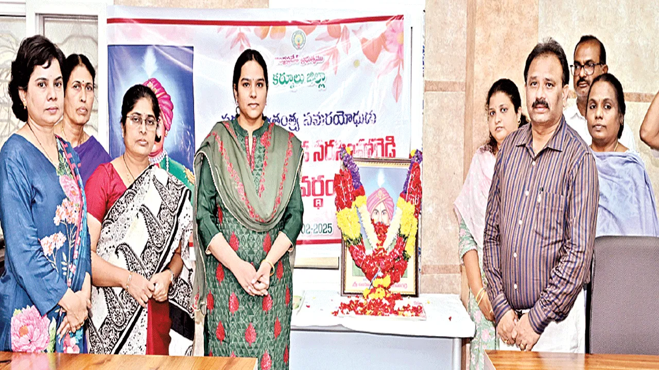 కర్నూలు కలెక్టరేట్, ఫిబ్రవరి 22(ఆంధ్రజ్యోతి): ఉయ్యాలవాడ నరసింహారెడ్డి దేశం కోసం ప్రాణ త్యాగం చేసిన గొప్ప స్వాతంత్య్ర సమరయోధుడని జాయింట్ కలెక్టర్ బి.నవ్య పేర్కొన్నారు. శనివారం ఉదయం 178వ ఉయ్యాలవాడ నరసింహారెడ్డి వర్ధంతిని పురస్కరించు కుని కలెక్టరేట్లోని మినీ కాన్ఫరెన్స హాలులో ఆయన చిత్రపటానికి పూలమాలలు వేసి నివాళులర్పించారు. ఈ సందర్భంగా జాయింట్ కలెక్టర్ మాట్లాడుతూ ఉయ్యాలవాడ నరసింహారెడ్డి గొప్ప విప్లవకా రుడు అన్నారు. ఈస్ట్ ఇండియా కంపెనీ వారికి ఏ మాత్రం భయప డకుండా హక్కుల కోసం ఆయన చూపిన పోరాట పటిమ, వీరత్వం, పౌరుషం ప్రతి ఒక్కరికి అనుసరణీయమని అన్నారు. ఈ కార్యక్రమం లో డీఆర్వో సీ. వెంకటనారాయణమ్మ, కార్పొరేషన కమిషనర్ రవీంద్ర బాబు, డీఎంహెచవో శాంతికళ, పర్యాటక శాఖ అధికారి విజయ, మెఫ్మా పీడీ నాగశివలీల, ఎంప్లాయిమెంట్ అధికారి దీపి పాల్గొన్నారు.