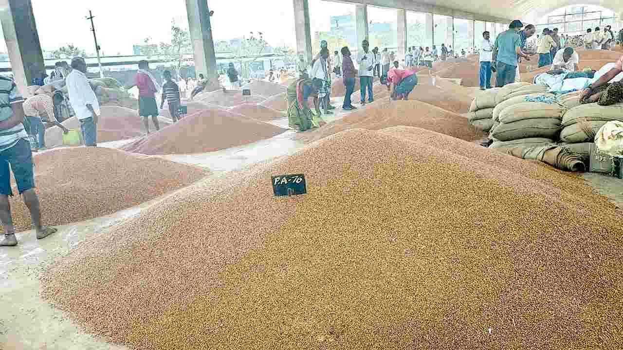 కర్నూలు అగ్రికల్చర్, జనవరి 8 (ఆంధ్రజ్యోతి): కర్నూలు మార్కెట్ యార్డులో కందులకు గత సంవత్సరం క్వింటానికి రూ.10 వేలకు పైగానే లభించింది. ఈ సంవత్సరం వాతావరణ పరిస్థితులు అనుకూలించి దిగుబడి ఎకరాకు 6 నుంచి 8 క్వింటాళ్ల దాకా లభించడంతో రైతులు సంతోషం వ్యక్తం చేస్తున్నారు. అయితే వ్యాపారులు ధర తగ్గిస్తూ వస్తుండటంతో రైతుల్లో ఆందోళన మొదలైంది. బుధవారం కర్నూలు మార్కెట్ యార్డులో క్వింటం కందులకు గరిష్ఠ ధర రూ.7,516, మధ్యస్థ ధర రూ.7,249లు, కనిష్ఠ ధర రూ.2,311కు చేరింది. ధర లభిస్తుందనే ఆశతో ఏకంగా 4,881 క్వింటాళ్లను అమ్మకానికి తీసుకువచ్చారు. ప్రభుత్వం నిర్ణయించిన మద్దతు ధర కందులకు రూ.7,550. కనీసం మద్దతు ధరకైనా కందులు కొనుగోలు చేసేలా ప్రభుత్వం చర్యలు తీసుకోవాలని రైతులు కోరుతున్నారు. వేరుశనగ కాయలకు గరిష్ఠ ధర రూ.6,589, మధ్యస్థ ధర రూ.4,900, కనిష్ఠ ధర రూ.4,300 దక్కింది. పూల విత్తనాలపై గరిష్ఠ, మధ్యస్థ, కనిష్ఠ ధరలు ఒకే రీతిలో రూ.3,429 పలికాయి. ఆముదాలకు గరిష్ఠ ధర రూ.5,589, మధ్యస్థ ధర రూ.5,489, కనిష్ఠ ధర రూ.5,191 దక్కింది. మొక్కజొన్నలకు గరిష్ఠ ధర రూ.2,335, మధ్యస్థ ధర, కనిష్ఠ ధర రూ,2,311 అందింది. శనగలకు గరిష్ఠ ధర, మధ్యస్థ ధర రూ.6,256, కనిష్ఠ ధర రూ.2,010 అందింది. ఉల్లిగడ్డలకు గరిష్ఠ ధర రూ.2,769, మధ్యస్థ ధర రూ.2250, కనిష్ఠ ధర రూ.1589లు పలికింది. ఎండుమిరప కాయలకు గరిష్ఠం రూ.14,309లు, మధ్యస్థం రూ.9,999లు, కనిష్ఠ ధర రూ.1,019లు అందింది. కొర్రలకు గరిష్ఠ, మధ్యస్థ ధరలు క్వింటానికి రూ,3,351లు మాత్రమే పలికింది.