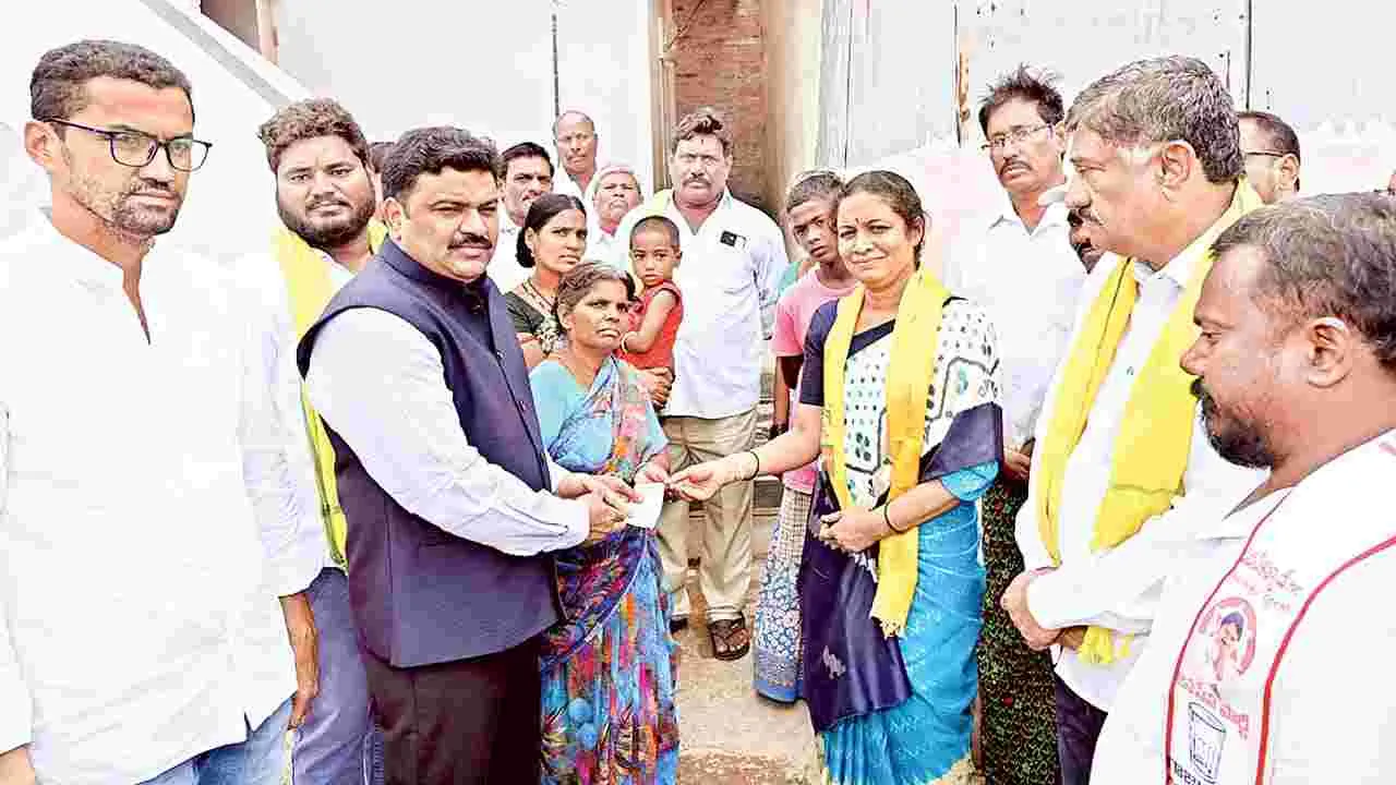 ఓర్వకల్లు, జూలై 1 (ఆంధ్రజ్యోతి): ఎన్టీఆర్ భరోసా పింఛన్ల డబ్బు లబ్ధిదారుల ఇళ్ల వద్దకే వెళ్లి అందిస్తున్నామని కలెక్టర్ రంజిత్ బాషా, ఎమ్మెల్యే గౌరు చరితారెడ్డి అన్నారు. మంగళవారం మండలంలోని నన్నూరు గ్రామంలో ఎన్టీఆర్ భరోసా పింఛన్ల పంపిణీ కార్యక్రమానికి కలెక్టర్ రంజిత్ బాషా, ఎమ్మెల్యే గౌరు చరితారెడ్డి హాజరయ్యారు. గ్రామంలో లక్ష్మమ్మ, సుంకన్న, ఆశమ్మ, సత్యం, వెంకటస్వామిలకు వృద్ధాప్య పింఛన్లు, లక్ష్మీదేవి, కుసుమ కుమారి, వెంకటలక్ష్మిలకు వితంతు పింఛన్లు, హనుమన్న, మద్దయ్యలకు వికలాంగ పింఛన్లు వారి ఇళ్ల వద్దకే వెళ్లి అందజేశారు. కలెక్టర్ మాట్లాడుతూ జూలై నెలలో జిల్లాలో అర్హులైన 2,36,640 మంది లబ్ధిదారులకు రూ.101.89 కోట్లు పంపిణీ చేస్తామని తెలిపారు. అధికారులు సరైన సమయానికి వచ్చి పింఛన్లు ఇస్తున్నారా అని లబ్ధిదారులను అడిగి తెలుసుకున్నారు. అద్దె ఇళ్లలో ఉంటున్నారా? తెలుసుకున్నారు. అద్దె ఇంట్లో ఉన్నట్లయితే ఇంటి పట్టా కోసం దరఖాస్తు చేసుకోవాలని తెలిపారు. ఎమ్మెల్యే గౌరు చరితా రెడ్డి మాట్లాడుతూ కూటమి ప్రభుత్వం అధికారంలోకి రాగానే రూ.3వేల నుంచి రూ.4వేలకు పింఛన్ పెంచిందని అన్నారు. కార్యక్రమంలో డీఆర్డీఏ పీడీ రమణారెడ్డి, డ్వామా పీడీ రమణయ్య, ఎంపీడీవో శ్రీనివాసులు, తహసీల్దార్ విద్యాసాగర్, టీడీపీ మండల కన్వీనర్ గోవిందరెడ్డి, స్థానిక నాయకులు విశ్వేశ్వరరెడ్డి, విజయుడు, సచివాలయ సిబ్బంది పాల్గొన్నారు.